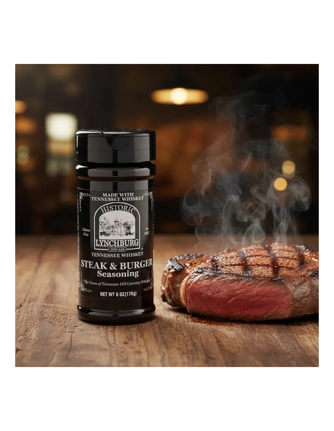 Historic Lynchburg Rubs Steak & Burger Seasoning with Jack Daniel’s is a spice blend designed to enhance meats, burgers and grilled dishes with a robust and tangy aromatic combination, enriched with a touch of whiskey.