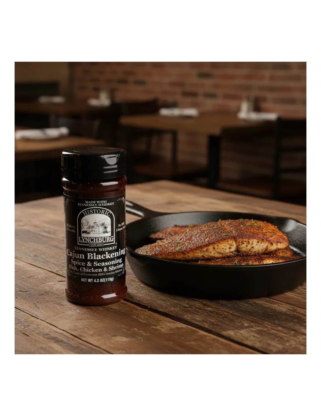 Historic Lynchburg Cajun Blackening Spice & Seasoning with Jack Daniel’s is a seasoning inspired by Cajun and Creole cuisine, specially formulated for the “blackened” cooking methods typical of the Southern United States. It combines paprika, cayenne pepper, black pepper, garlic, onion, aromatic herbs, and a touch of Jack Daniel’s for a subtle woody note. This blend creates a flavorful crust when applied generously, offering a contrast of warm spices, smoky notes, and aromatic depth.
