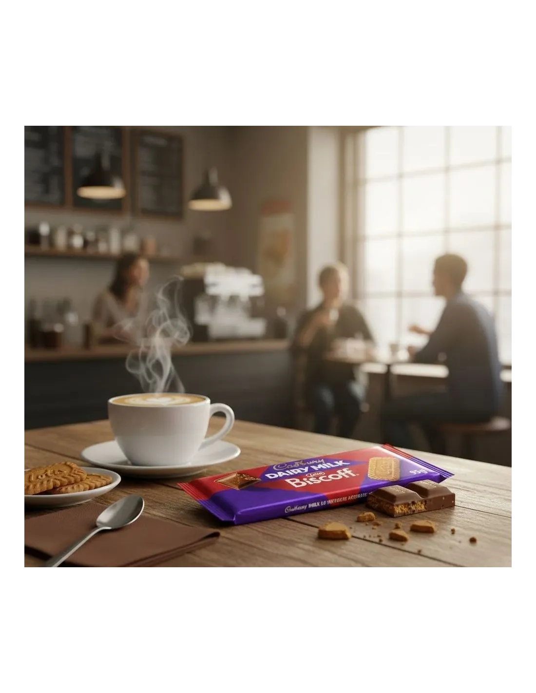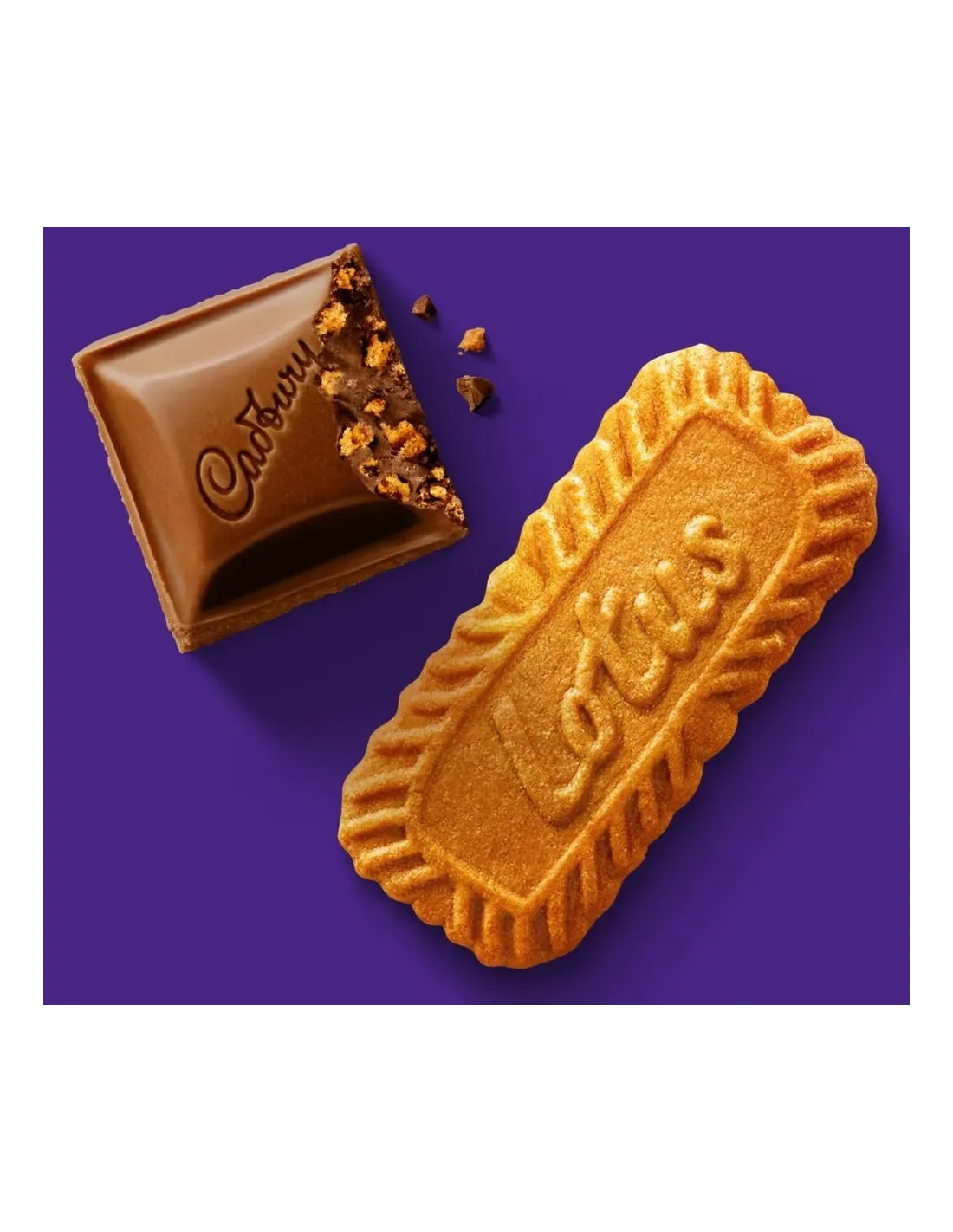 Cadbury Dairy Milk Lotus Biscoff is a meeting between two icons of global indulgence: the famous Cadbury Dairy Milk bar , renowned for its smooth and creamy milk chocolate, and Lotus Biscoff biscuits , known for their crunchy texture and unique caramelized taste.