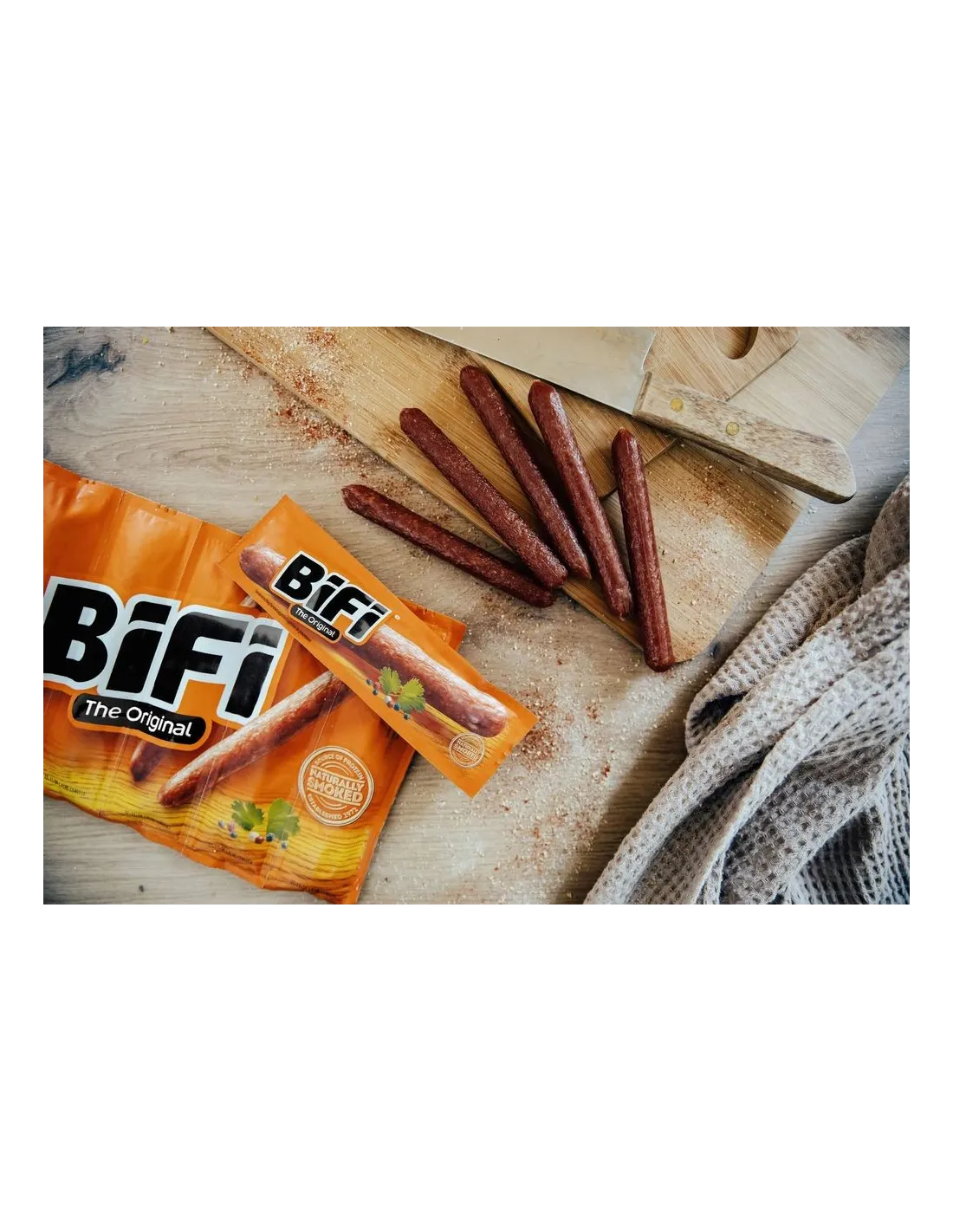 Ideal for snacks, the Bifi Original sausage is a small salami sausage made from pork and beef. It only weighs 20g but it's the perfect snack when you're feeling a bit hungry.