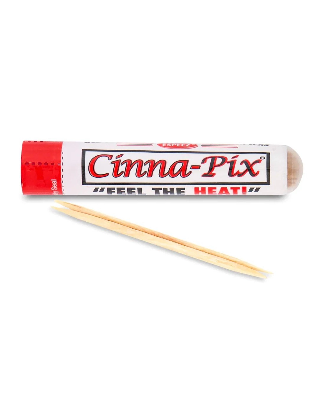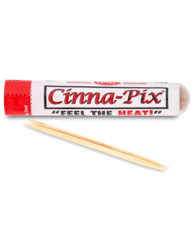 Add some zest to your everyday life with the famous Espeez Cinna-Pix Cinnamon ! A true American institution, these little wooden toothpicks are intensely infused with tangy cinnamon . A perfect sugar-free alternative for fresh breath, a quick pick-me-up after a meal, or a relaxing chew toy in true American style!