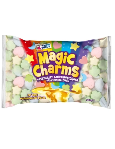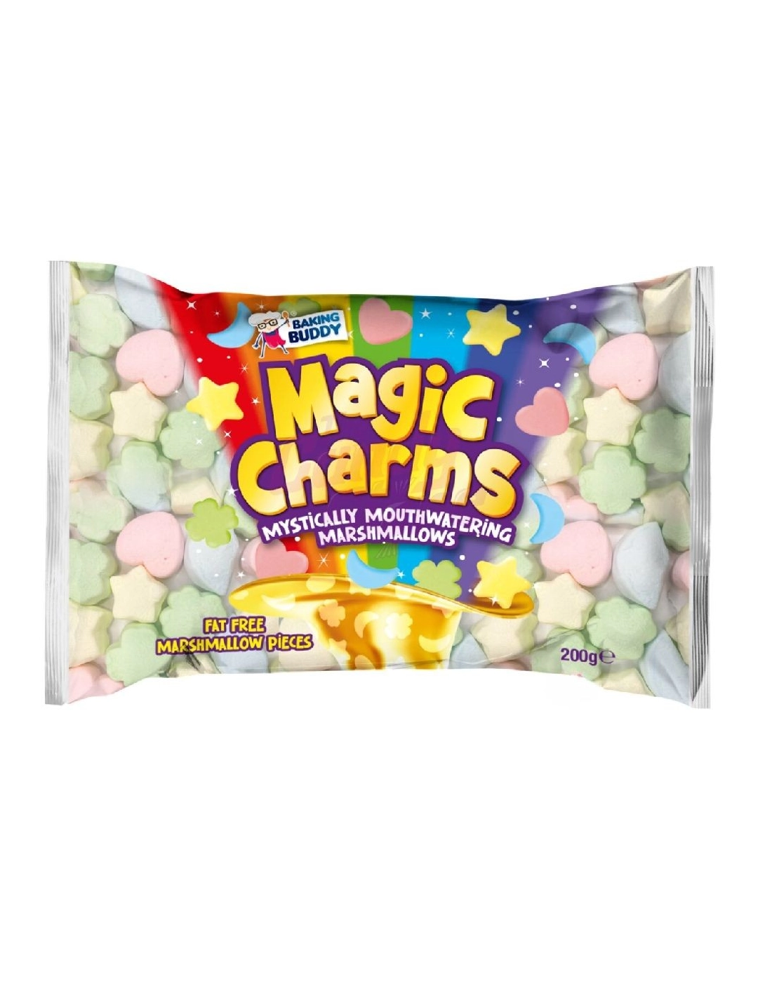 Make your childhood dream come true with Baking Buddy Magic Charms Marshmallows ! If you've always wanted to devour a bowl filled with nothing but those famous little marshmallows from your favorite American cereal, this product is for you. These adorable mini dehydrated marshmallows (shaped like stars, hearts, or moons) add a touch of magic and color to all your creations.