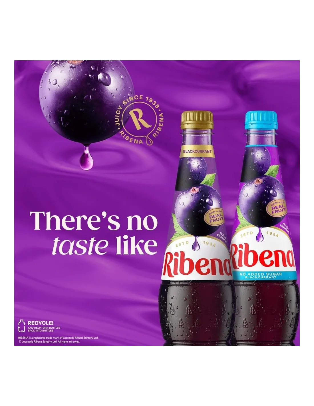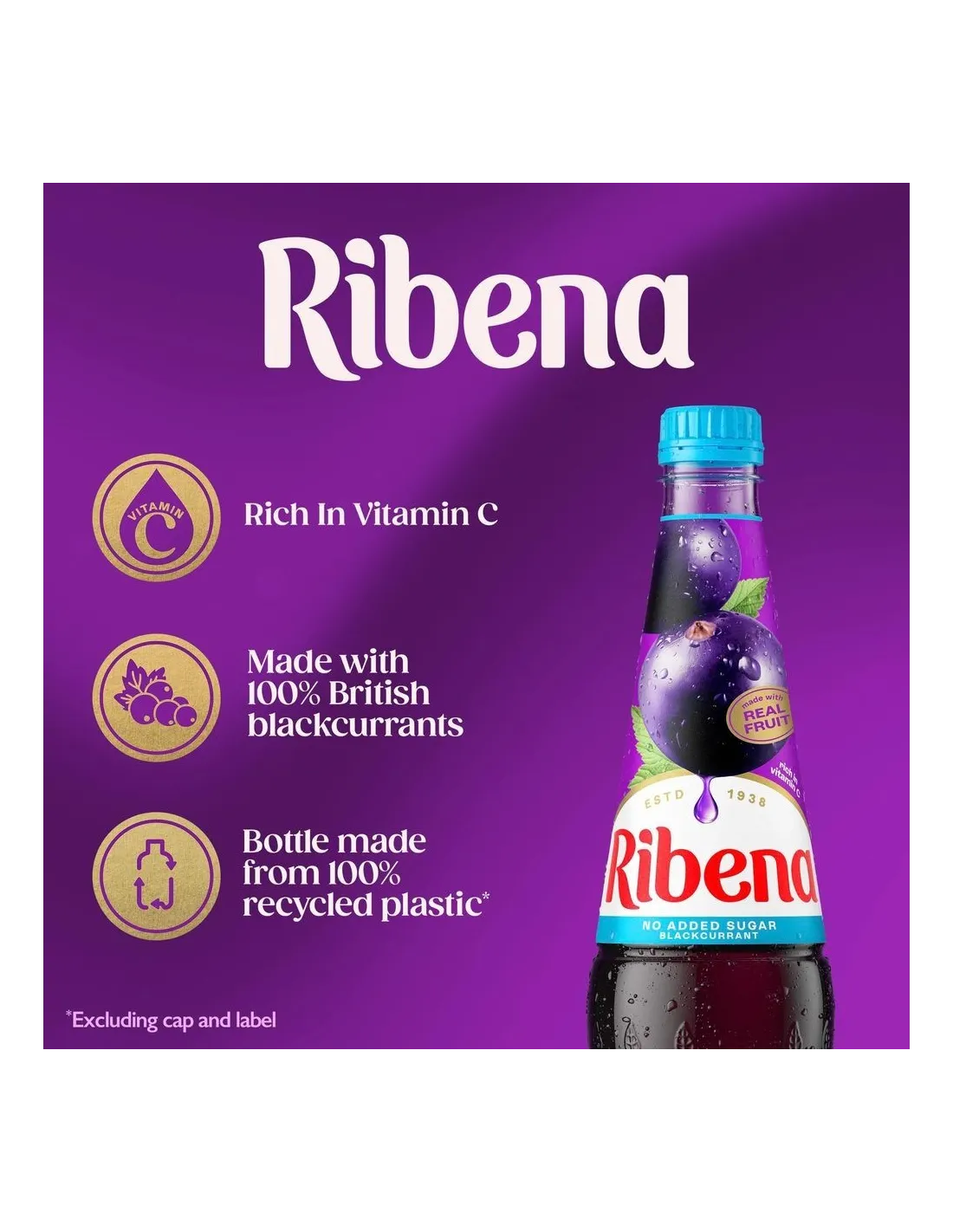 Ribena Blackcurrant No Added Sugar is the sugar-free version of the famous British blackcurrant syrup . Made with real blackcurrants grown in the UK , rich in vitamin C and calorie-free , this concentrate offers the same fruity taste loved since 1938. 850ml bottle, makes approximately 17 servings.