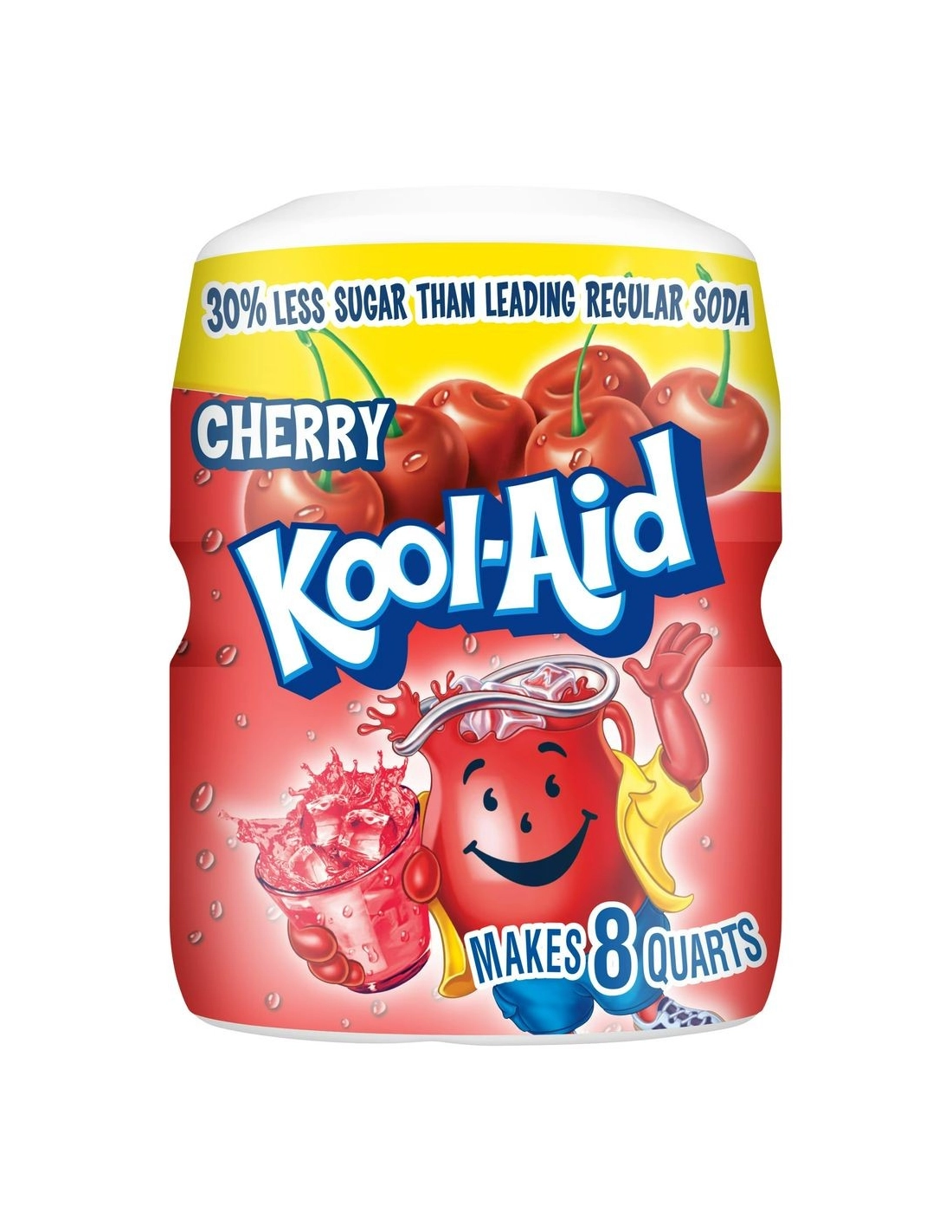 The most practical and economical format: Forget the hassle of measuring sugar! Unlike traditional little packets, this large Kool-Aid tub contains perfectly sweetened powder. With its ultra-convenient measuring lid, simply fill the cap to the line, pour into your pitcher of iced water, and stir. One tub makes nearly 8 liters of this delicious cherry drink! In addition to being 100% caffeine-free and rich in vitamin C, it contains 35% less sugar than most regular sodas.