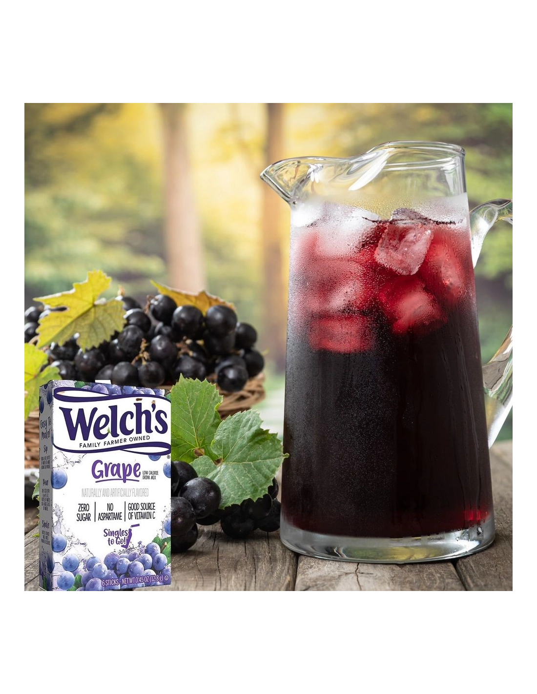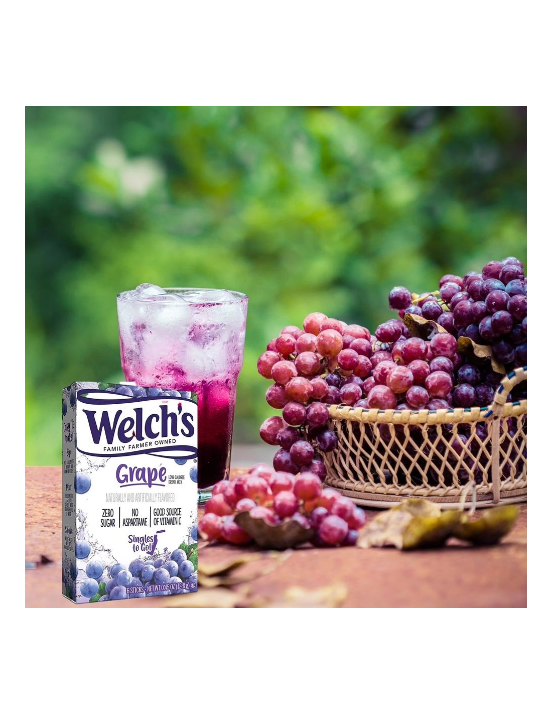 Craving an intensely fruity break? Discover the iconic taste of the USA with Welch's Singles To Go Grape sticks! These ultra-convenient little sachets let you recreate the authentic and legendary American Concord grape juice in a powder that dissolves completely sugar-free . The perfect on-the-go companion to color and flavor your water every day with a 100% American taste, guilt-free!