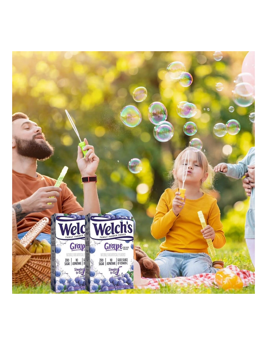 In the United States, Welch's (founded in 1869) is the historical and undisputed benchmark for fruit juice. Its secret? The use of the famous "Concord" grape, a variety instantly recognizable thanks to its deep purple color and its intensely sweet and powerful aroma. With the Singles To Go range, say goodbye to heavy bottles: this American institution comes straight to your pocket!