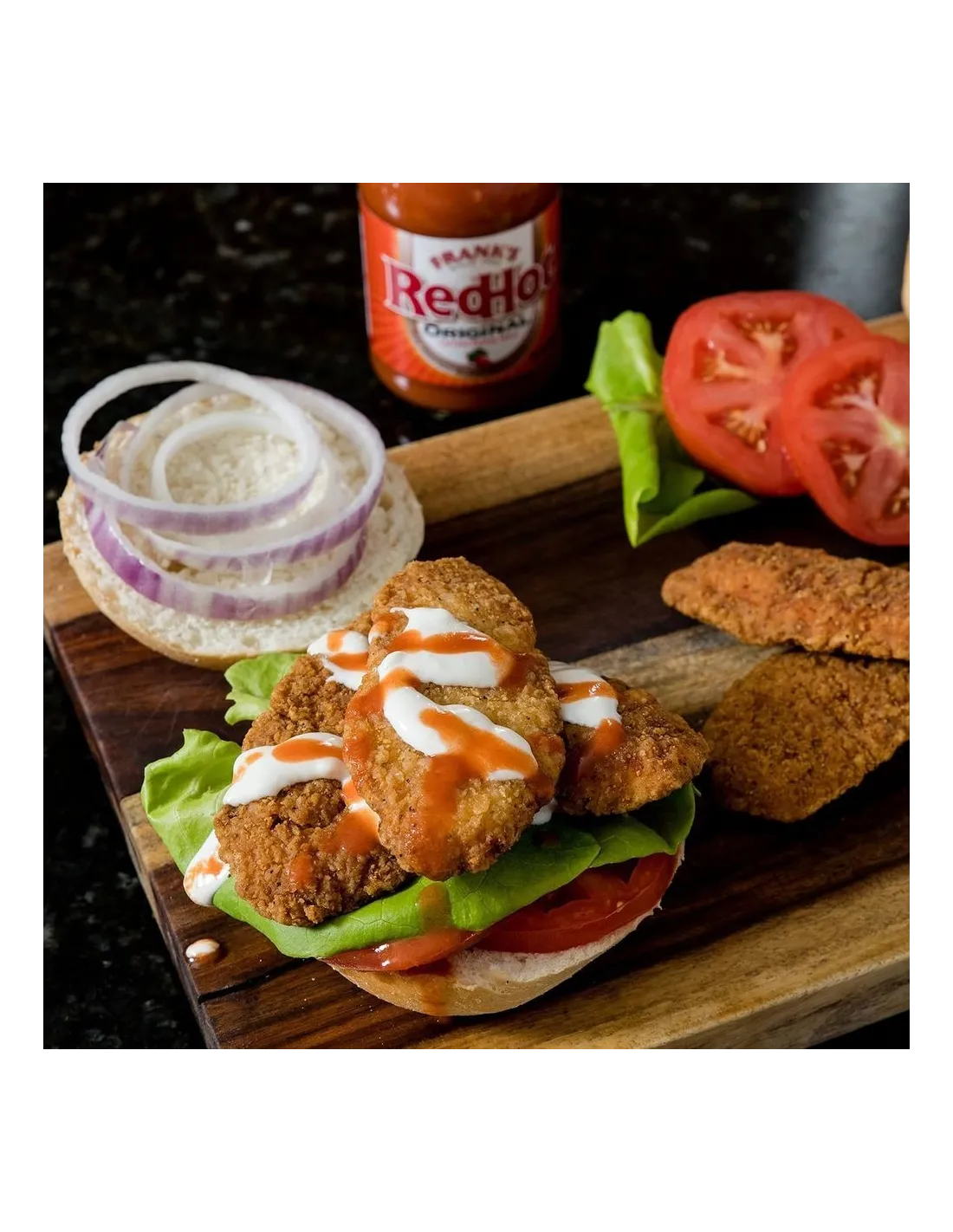 Tip : For perfect homemade Buffalo wings, mix equal parts melted butter and Frank's RedHot sauce, then generously coat your fried chicken wings. Serve with ranch or blue cheese sauce for a truly authentic result.