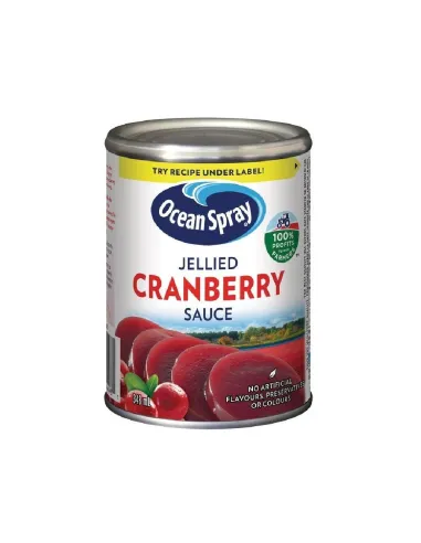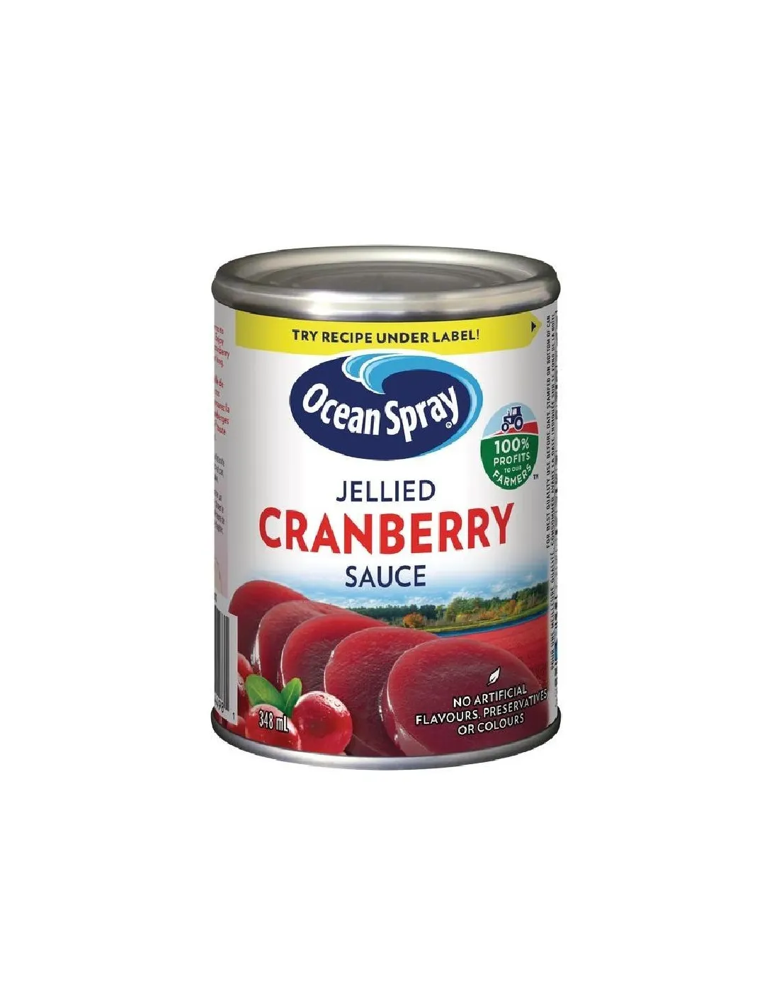 Bring true North American tradition to your table with the must-have Ocean Spray Jellied Cranberry Sauce (348ml) ! Directly imported from Canada , this legendary jellied cranberry sauce is sweet, fruity, and subtly tart. It's the perfect accompaniment to elevate your Thanksgiving turkey, roast meats, or delicious sandwiches the next day!
