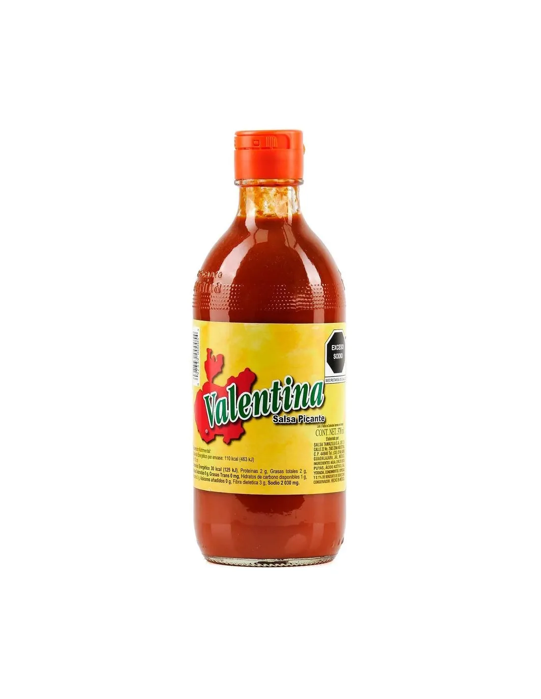 Valentina Salsa Picante is Mexico's most popular hot sauce, made in Guadalajara by Salsa Tamazula since 1960. Made with puya peppers from the state of Jalisco, vinegar, and spices, it has a thicker, less vinegary texture than Louisiana-style hot sauces. Moderate heat level: 900 Scoville Heat Units.