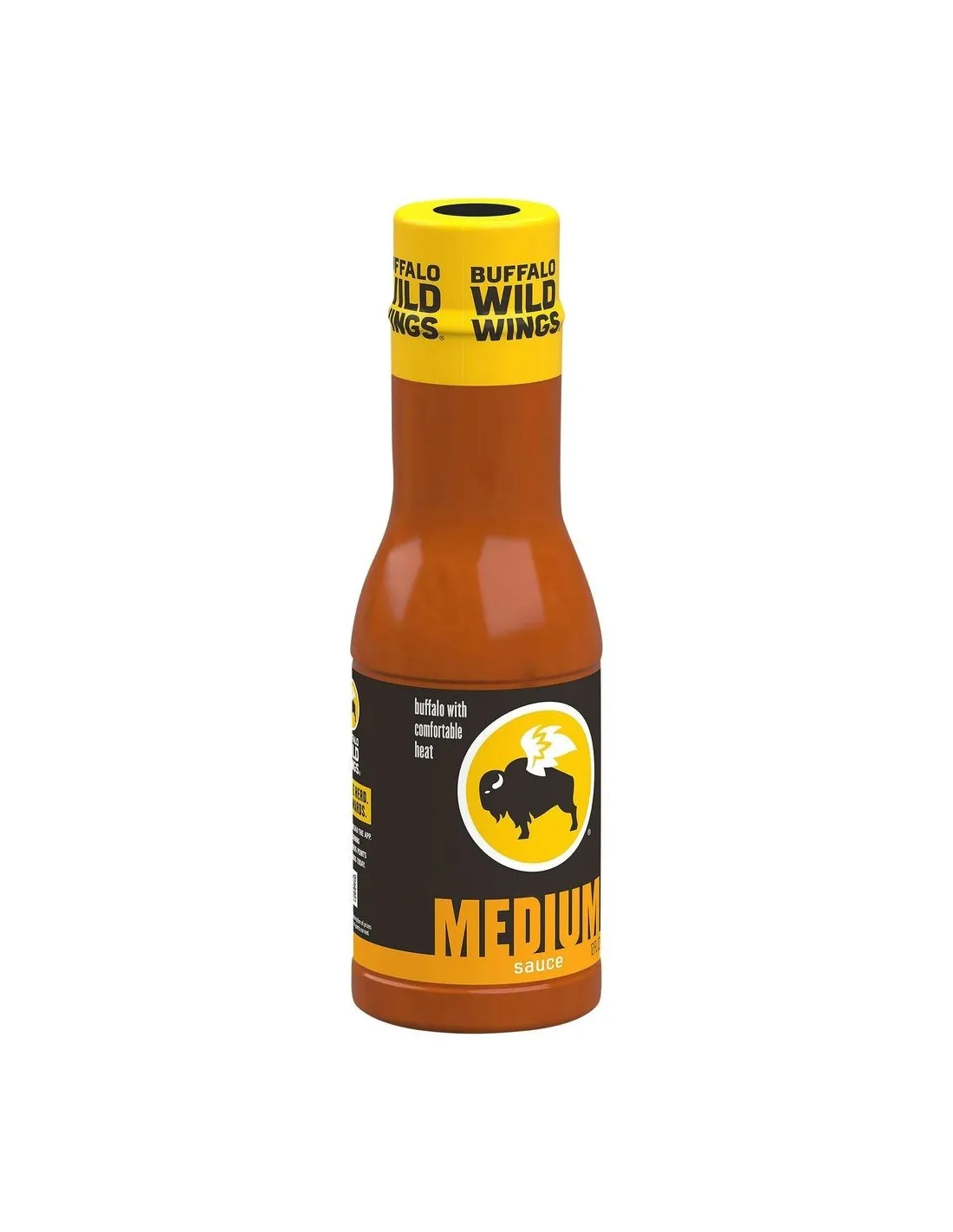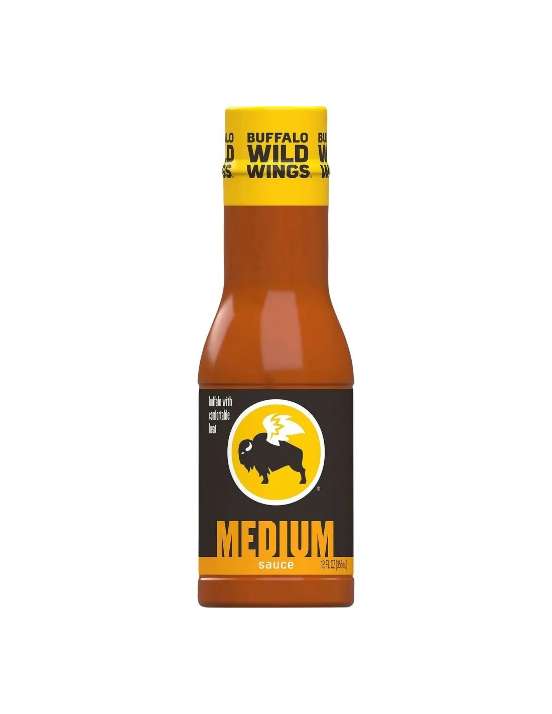 The Buffalo Wild Wings story began in 1982 when Jim Disbrow and Scott Lowery , two friends from Buffalo, New York, were desperately searching for authentic Buffalo-style wings in Ohio. Finding nothing, they decided to open their own restaurant near the Ohio State University campus in Columbus. The first "Buffalo Wild Wings & Weck" offered wings with a dozen sauces—Medium being the flagship sauce, the one that defines the Buffalo standard. The original name included "Weck," a reference to beef on weck, a traditional New York State sandwich on a kummelweck bun. Customers quickly shortened the name to "BW-3." In 2007, Disbrow and Lowery were inducted into the National Buffalo Wing Hall of Flame. Today, BWW has over 1,500 restaurants worldwide and offers 26 signature sauces. The chain is the largest server of draft beer in the United States. Made in the USA . Contains egg and soy. Size 12 fl oz (355ml).
