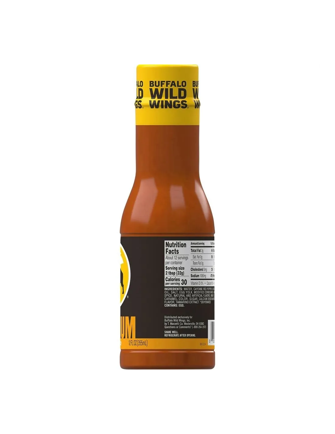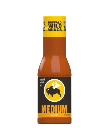 Buffalo Wild Wings Medium Sauce is the authentic American Buffalo sauce in its most balanced form. Made with a base of red cayenne pepper and distilled vinegar, enriched with egg yolk for a creamy texture, and enhanced with garlic, onion, and an exotic touch of tamarind . The heat is just right – hot enough to give you a kick, mild enough to keep you coming back for more.
