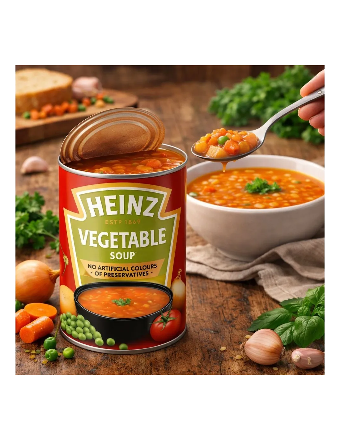 Free from artificial colors, flavors, and preservatives, Heinz Vegetable Soup is a healthy and nutritious option, perfect for a light meal or a comforting break.