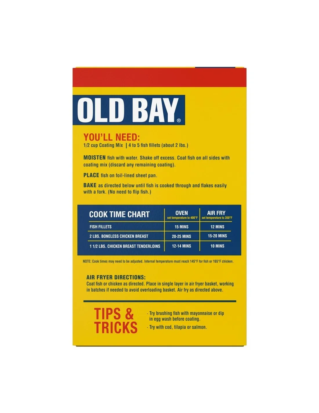 Old Bay Seasoned Coating Mix combines one of America's most iconic seasonings with a ready-to-use, crispy coating. Created in Baltimore in 1939, Old Bay is the gold standard for enhancing fish, seafood, crab cakes, French fries, or chicken. With this coating mix, you get all its iconic flavor… but in an ultra-convenient and deliciously crispy coating.