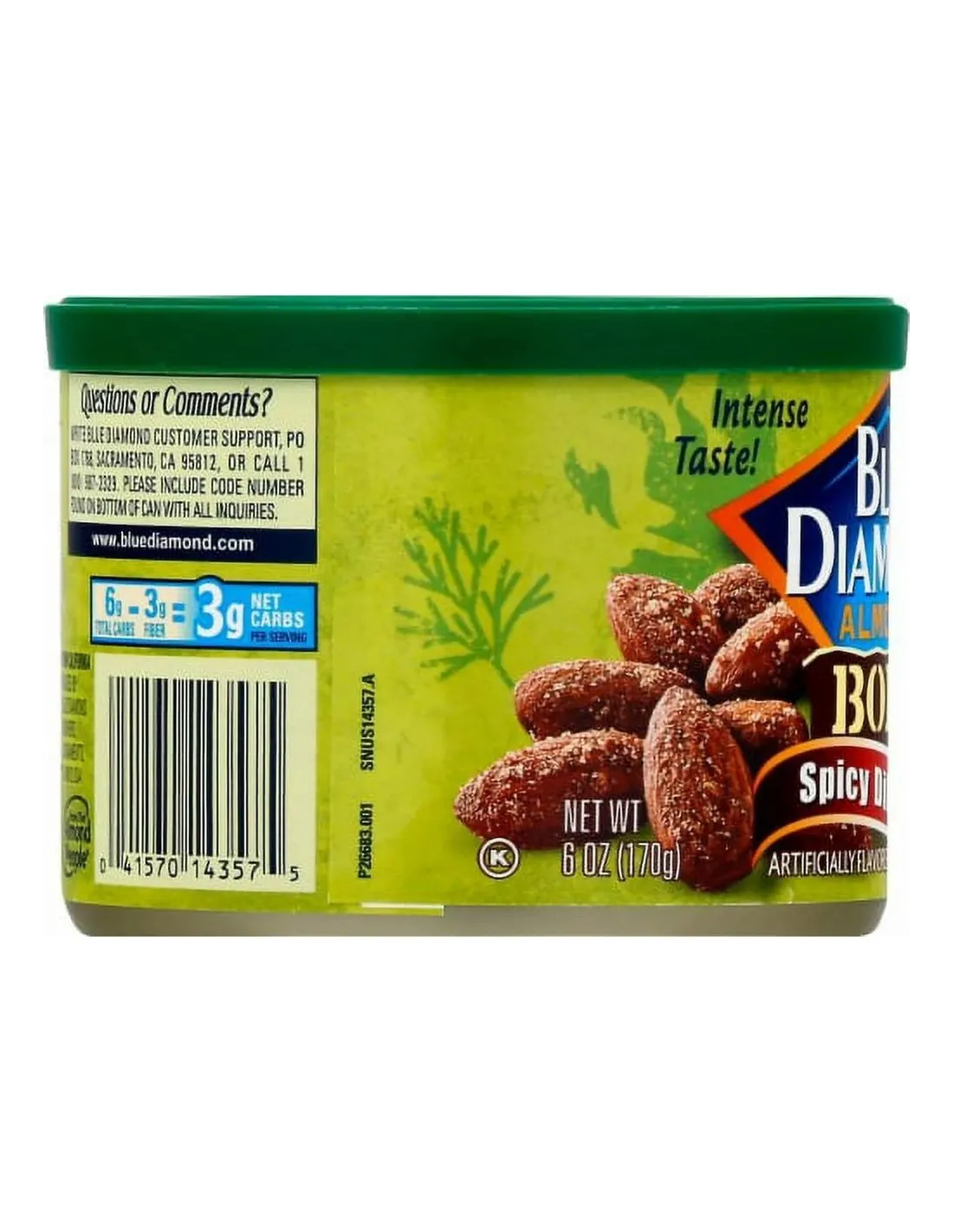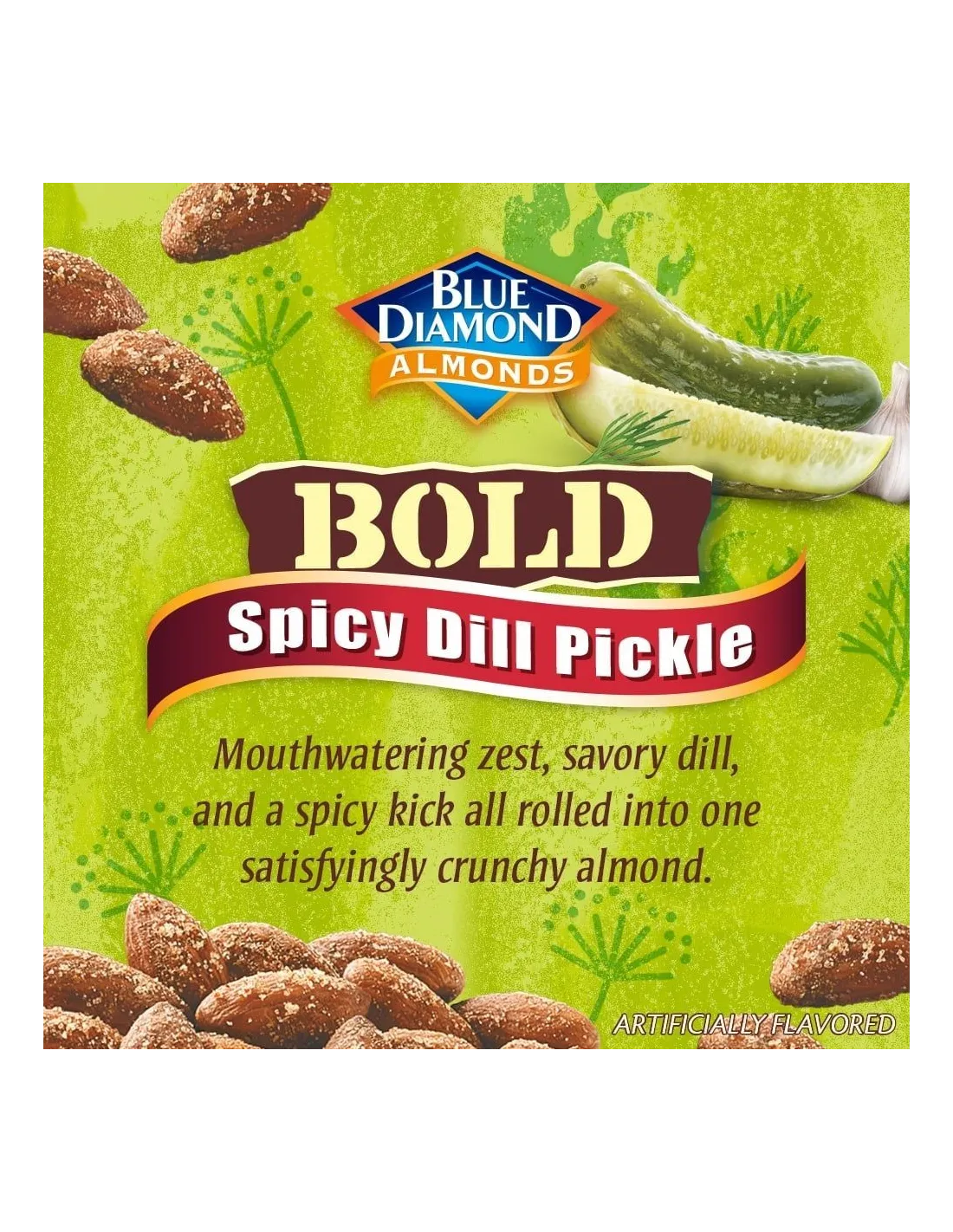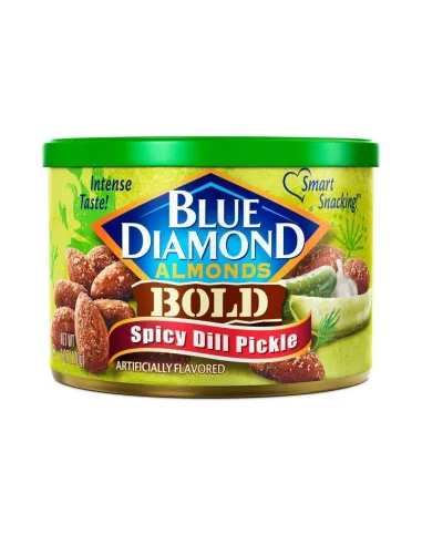 Blue Diamond Almonds Bold Spicy Dill Pickle combines the crunch of California almonds with the bold flavor of spicy dill pickle. A unique seasoning blend of tangy vinegar, fragrant dill, garlic, and chili pepper coats each roasted almond. The protein snack that pushes the boundaries of taste.