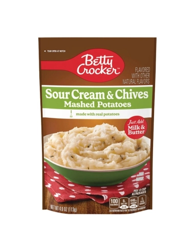 Save time in the kitchen without ever sacrificing taste with delicious Betty Crocker Sour Cream & Chives Mashed Potatoes ! Betty Crocker brand mashed potatoes are very popular in American homes for their authentic "homemade" texture and rich, flavorful seasonings.