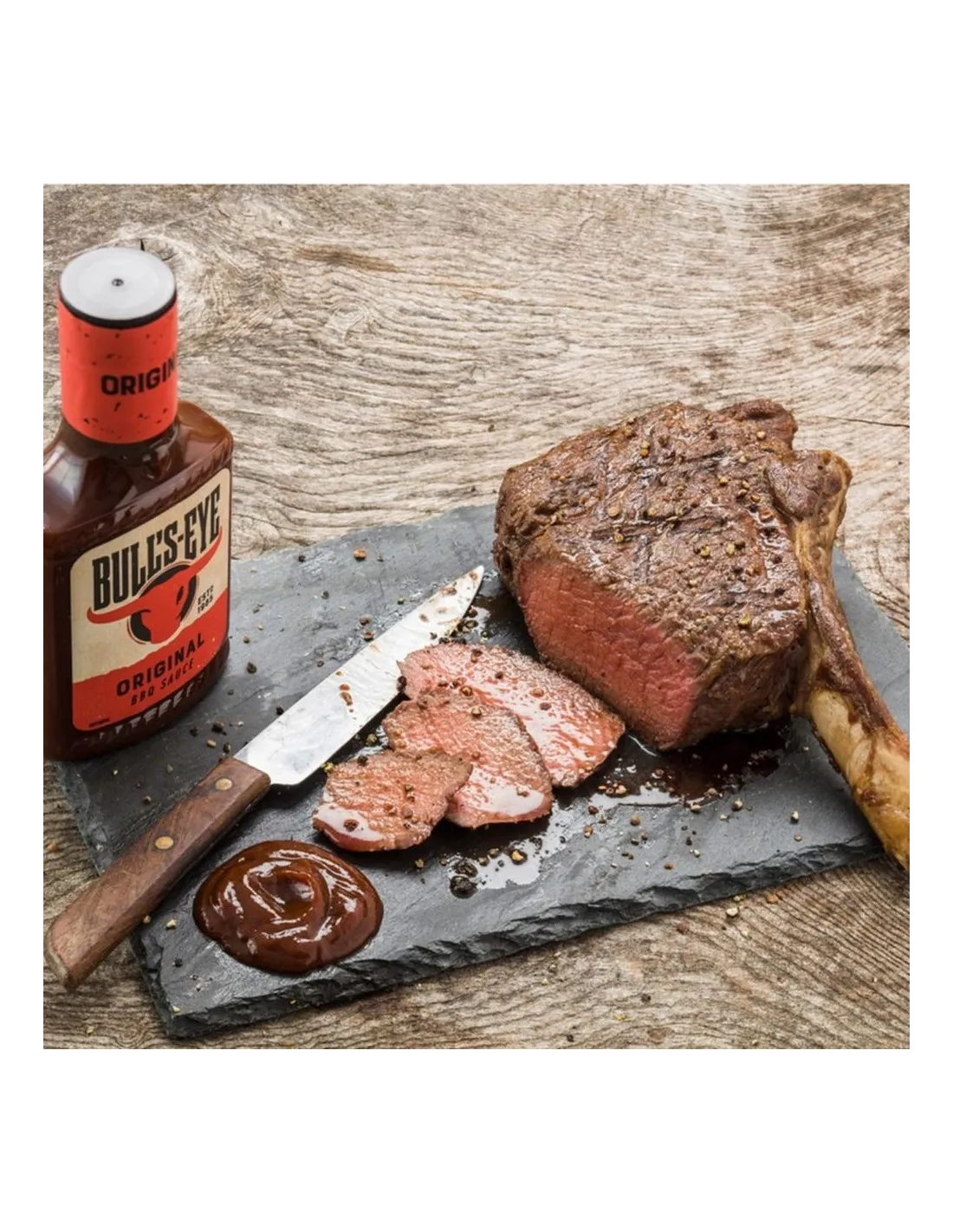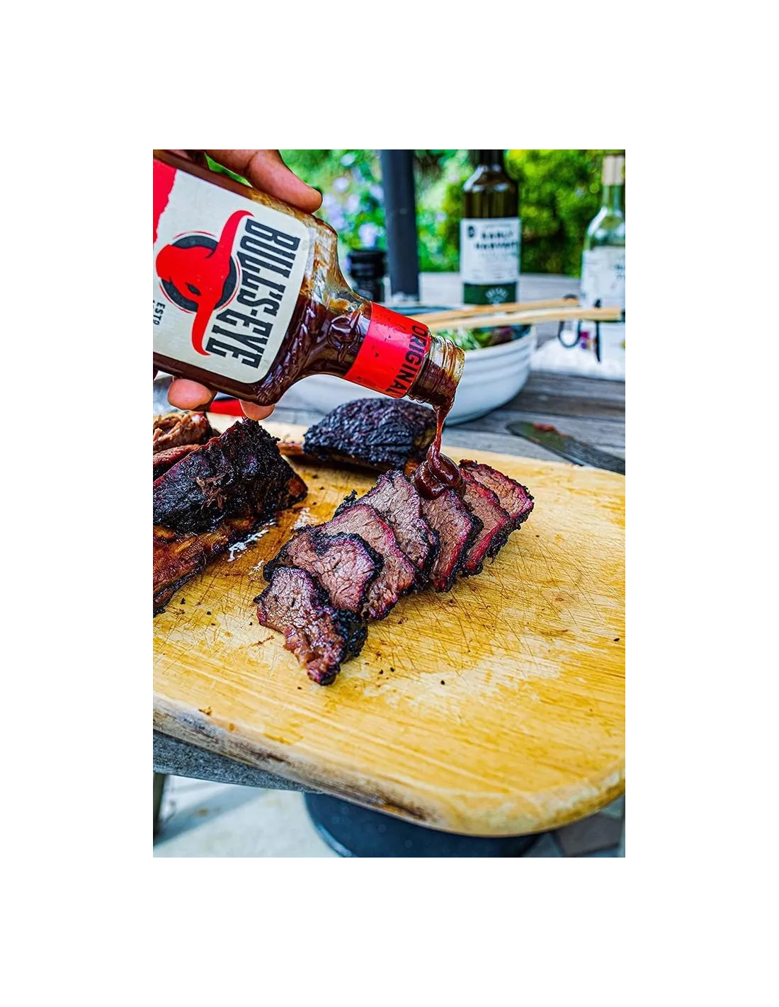 Bring the true taste of American smokehouse to your table! Bull's Eye Original BBQ Sauce has been a legend in the United States for over 35 years. Famous for its rich texture and bold taste, made with molasses and spices, it's the secret weapon for achieving perfectly sticky, caramelized ribs. It's the Boss of BBQ.