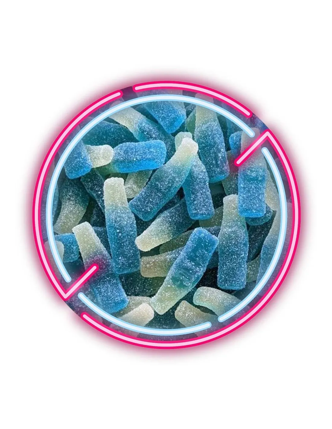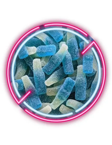 Are you a fan of bulk candy? So it's time to treat yourself with our bag of Sour Raspberry Bottles candies . You will love these candies in the shape of small, slightly acidic blue bottles (Sour) with a good raspberry taste.