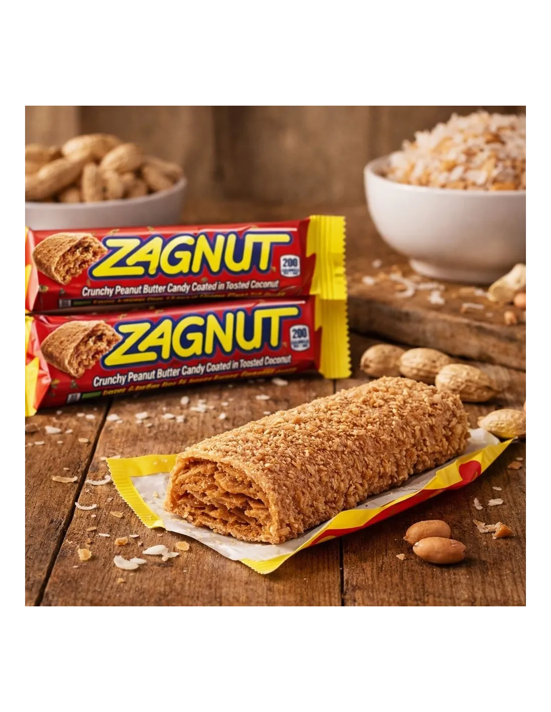 Ami il burro d'arachidi e il cocco? Allora l' Hershey's Zagnut fa al caso tuo! Lo Zagnut è una barretta croccante con ripieno di burro d'arachidi, ricoperta di scaglie di cocco tostato e rifinita con una copertura di cioccolato al latte Hershey's . È un best-seller negli USA !