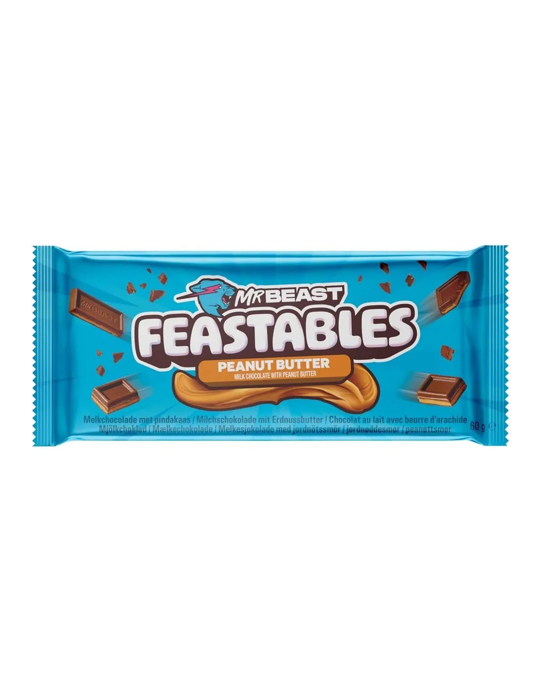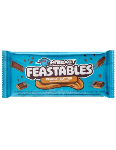 Adorerai questa deliziosa barretta di cioccolato al latte e burro di arachidi. La barretta di cioccolato al burro di arachidi MRBEAST Feastables , 60 g, ha la forma di una tradizionale barretta di cioccolato.