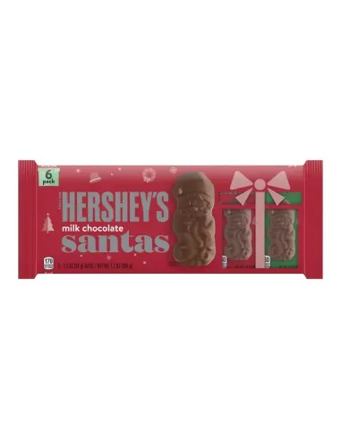 I Babbo Natale al cioccolato al latte Hershey's portano in vita tutta la magia del Natale nel cioccolato americano! Una confezione da 6 personaggi di cioccolato al latte, che si sciolgono in bocca e sono super golosi.
