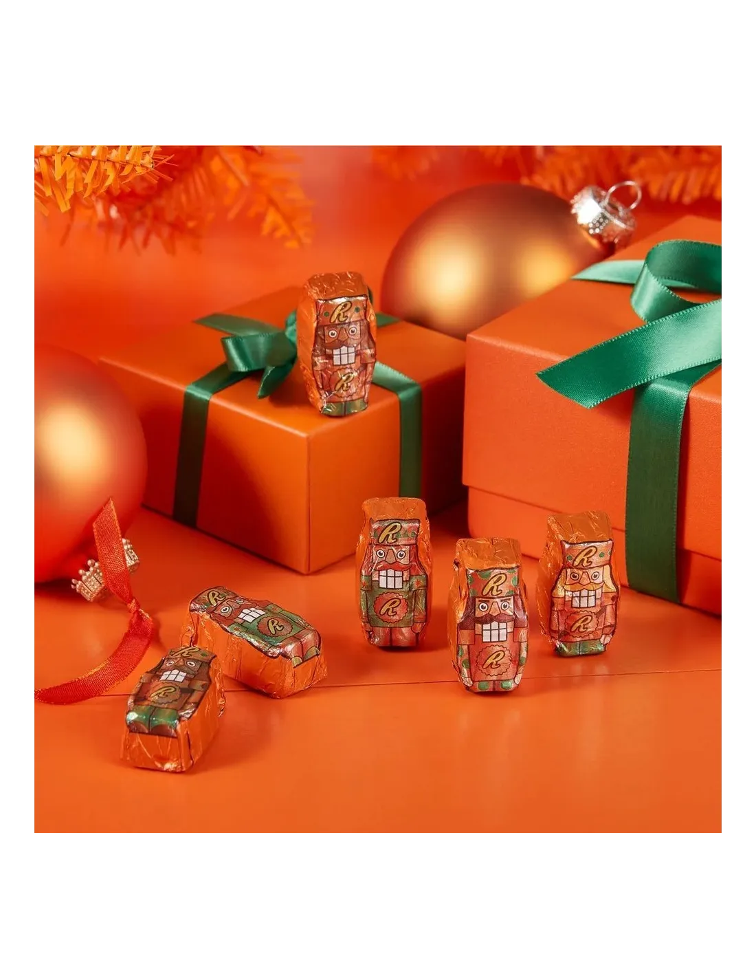 Gli Schiaccianoci al Burro d'Arachidi di Reese's sono schiaccianoci al cioccolato al latte ripieni di una morbida crema al burro d'arachidi . Un piacere festivo negli Stati Uniti, ogni pezzo offre il leggendario duo cioccolato-burro d'arachidi di Reese's in un formato da collezione stagionale. Confezionati singolarmente. Kosher . Sacchetto da 261 g (9,2 oz).