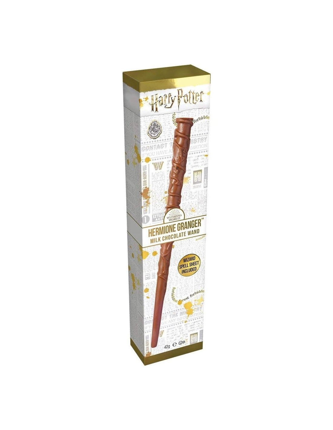 Realizzata in delizioso e morbido cioccolato al latte , questa bacchetta di circa 42 g riproduce fedelmente le caratteristiche delle famose bacchette dei tuoi eroi preferiti (Harry Potter, Albus Silente, Hermione Granger o Ron Weasley). Ma la magia non finisce qui: all'interno di ogni confezione troverai un autentico foglio degli incantesimi da collezione che ti insegnerà i movimenti esatti per lanciare Lumos o Expelliarmus !