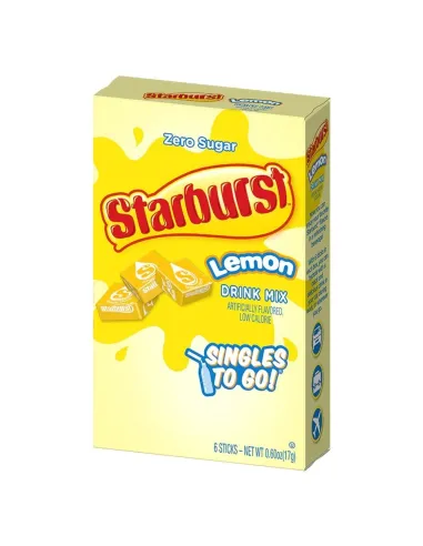 Starburst Singles To Go! Lemon trasforma l'acqua normale in una bevanda alla frutta americana con un intenso sapore di limone dolce e aspro , fedele al leggendario sapore delle caramelle Starburst Lemon .