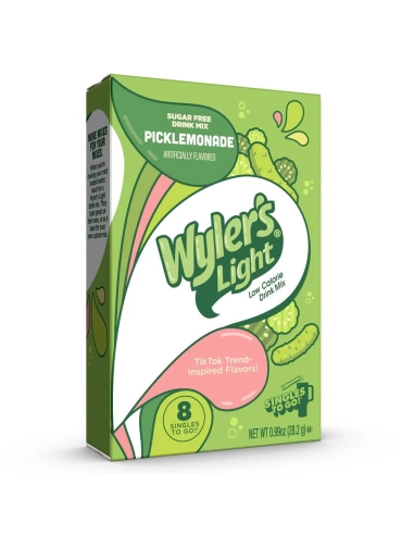 Preparatevi a una vera e propria esplosione di gusto con Wyler's Light Singles To Go Picklemonade ! Se seguite le tendenze americane sui social media, saprete che negli Stati Uniti c'è una vera passione per il "pickle" (il grande cetriolino sottaceto americano marinato con aneto e aglio). Wyler's Light ha osato fare l'impossibile: fondere questo sapore salato e acidulo con la dolcezza aspra della limonata tradizionale!