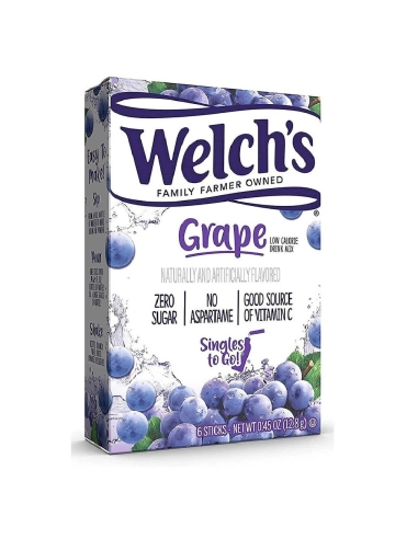 Noi di Pop's America adoriamo: il vero sapore dell'uva americana! Un gusto raro in Europa, ma irrinunciabile negli Stati Uniti. Welch's ha saputo riprodurre alla perfezione questo sapore: ricco, vellutato, e il suo splendido colore viola rende la bevanda davvero divertente. Il formato in stick è ideale per l'ufficio, la scuola o la palestra. Mescolato con acqua ghiacciata, è una vera delizia che permette di rimanere idratati senza consumare un solo grammo di zucchero!