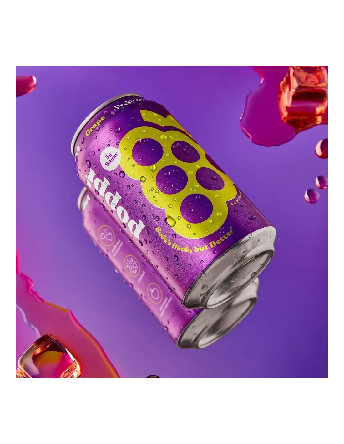 Poppi Prebiotic Soda Grape è la versione frizzante del benessere all'uva! Una bibita moderna, fruttata e leggera, arricchita con prebiotici naturali.