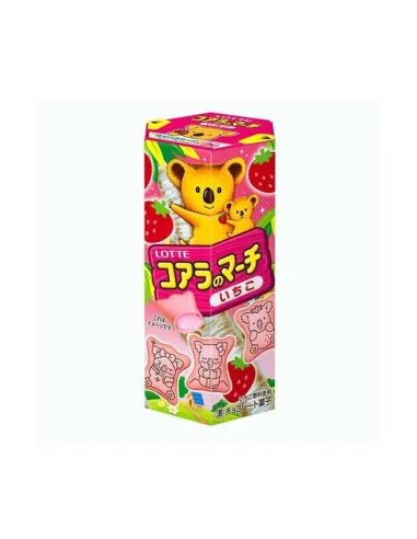 Questi piccoli biscotti Koala's March alle fragole provenienti dal Giappone hanno la forma di piccoli Koala con un interno di crema alla fragola.