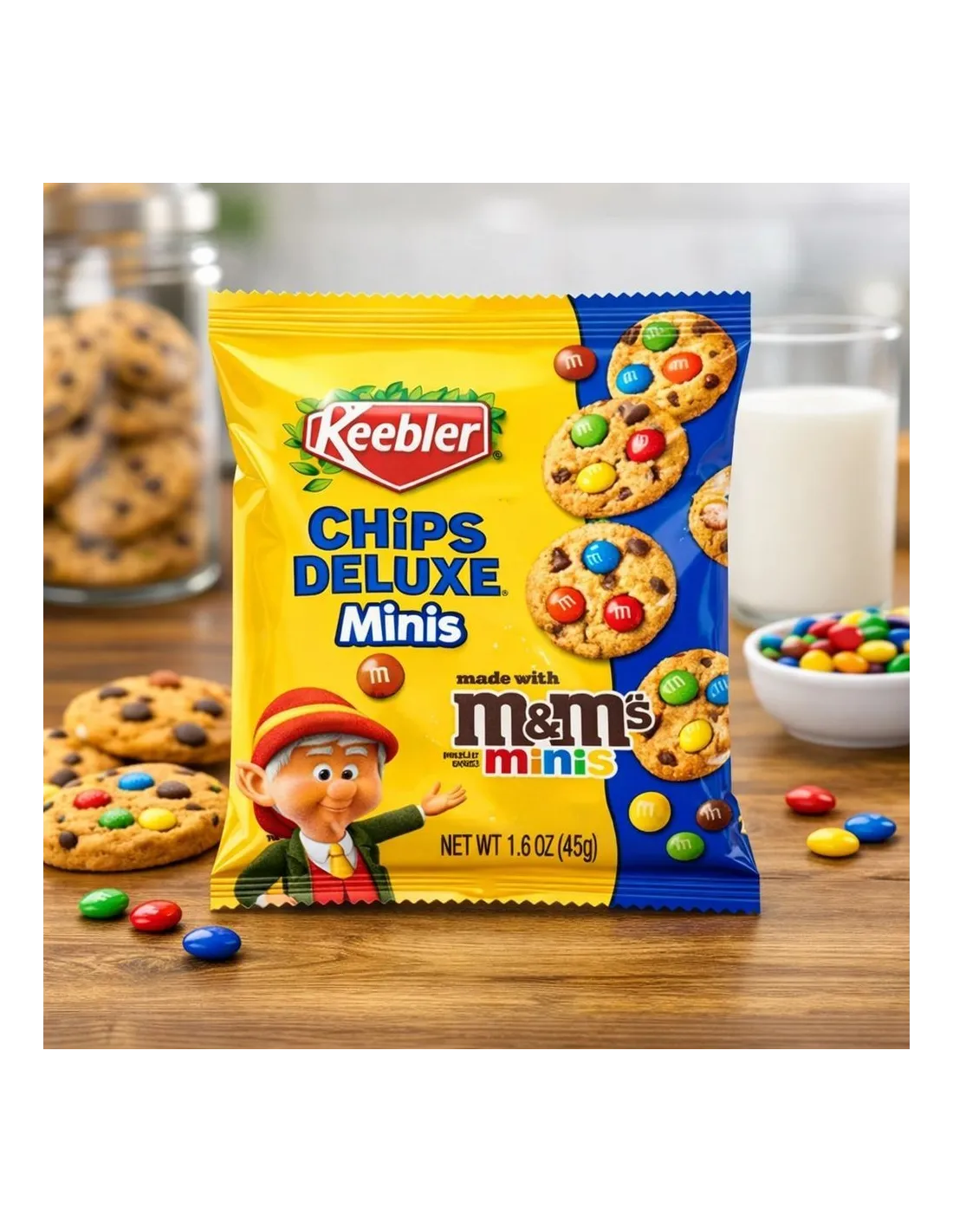 Se amate i biscotti, Keebler, in collaborazione con M&M's, vi invita a scoprire questi piccoli biscotti ripieni di gocce di cioccolato e pezzetti di M&M's al cioccolato al latte. Ogni confezione di Keebler Chips Deluxe Bite Size Cookies M&M's Minis contiene 45 g e sono deliziosi.