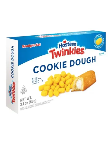 I Twinkies Cookie Dough Bites Hostess trasformano l'iconico Twinkie in un delizioso biscotto in miniatura. Ogni pezzo offre una consistenza fondente e leggermente densa, con un dolce sapore di vaniglia che ricorda la crema e la torta Twinkies. Il formato piccolo permette un consumo facile e graduale, perfetto per gli amanti dei dolci americani.