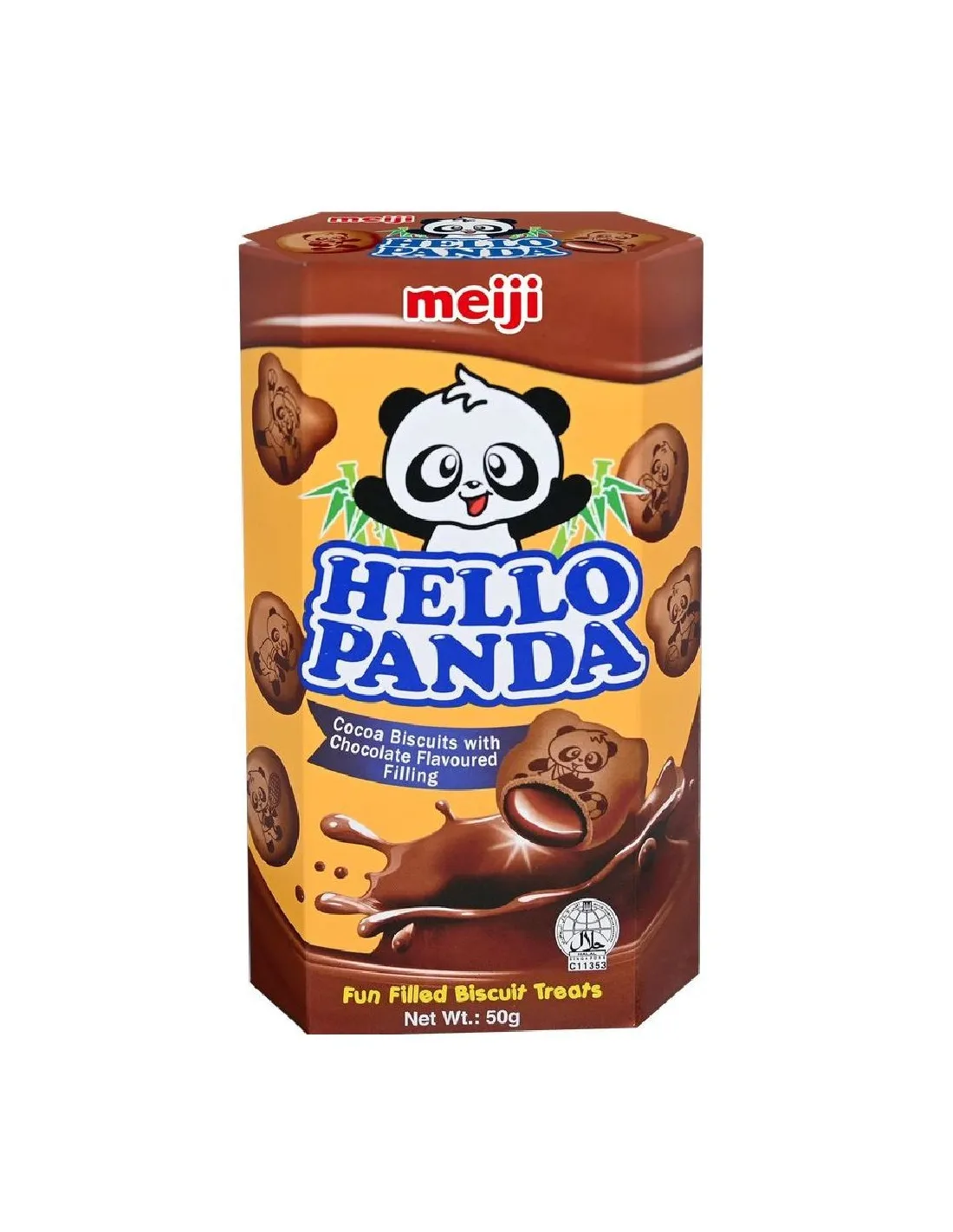 Ogni biscotto è rappresentato da un panda che fa sport, per un aspetto ancora più divertente e amichevole! Confezione Hello Panda da 50 g.