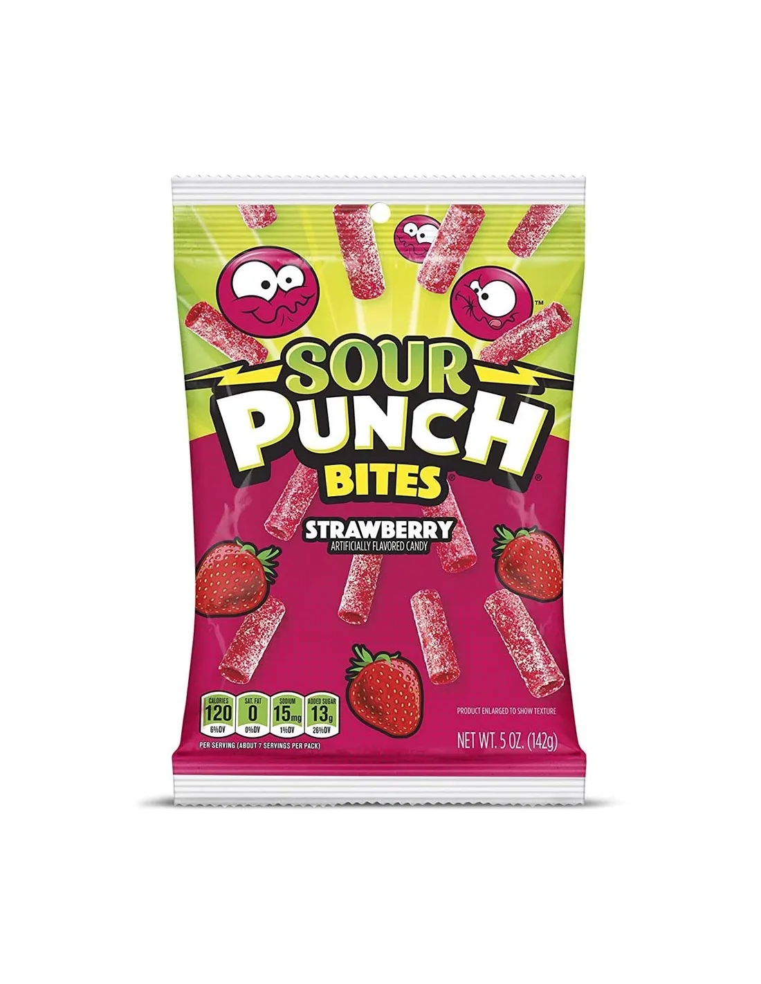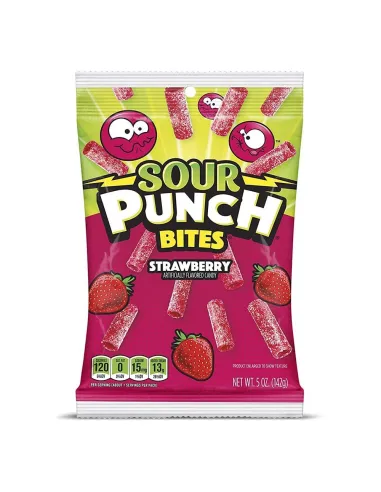 Gustate piccoli bocconcini deliziosi al buon gusto delle fragole . Le caramelle SOUR PUNCH BITES ALLA FRAGOLA possono essere gustate in qualsiasi momento della giornata e sono facilmente condivise con la famiglia o gli amici. Per una pausa deliziosa e fruttata, scopri queste piccole caramelle gommose e piccanti!