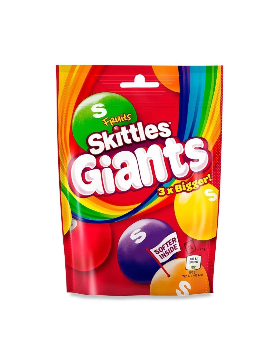 Skittles ci propone una versione dei famosi Skittles in un formato 3 volte più grande dei soliti, gli Skittles Giants Fruit Sweets.