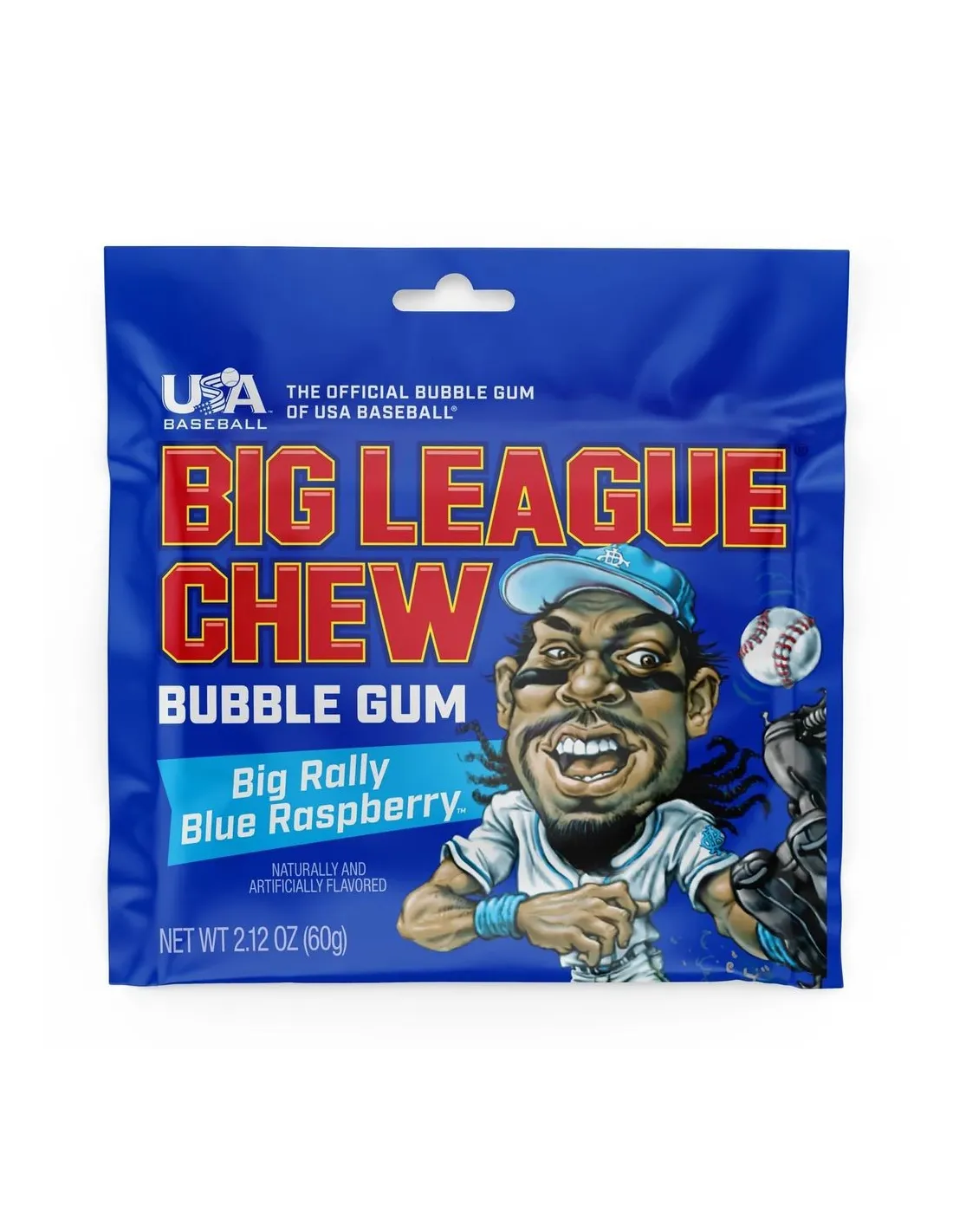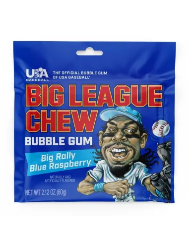 Un sacchetto di gomma da masticare che può essere tagliato a piacere sotto forma di piccoli fili e che ha la capacità di mantenere il gusto e la durata di essere masticato per tutta la durata di una partita di Baseball. Divenuta il riferimento per tutti i giocatori della MLB , questa versione della Big League Chew Blue Raspberry ha un buon sapore di lampone.