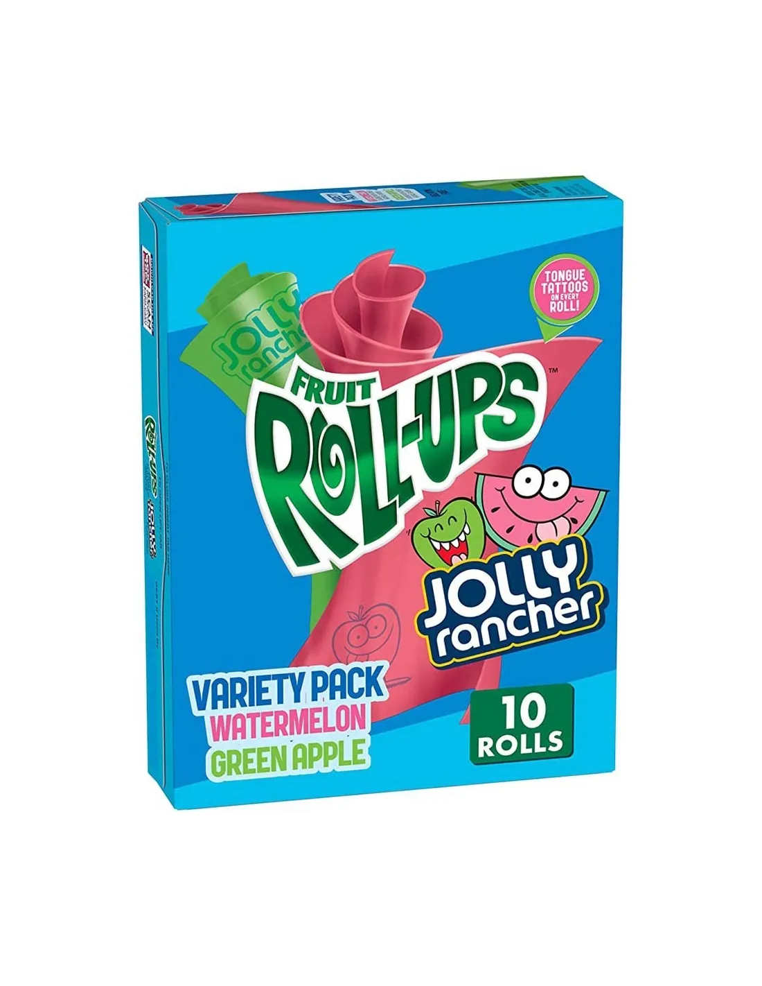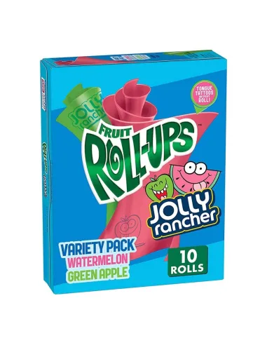 Dai un'occhiata alle caramelle Jolly Rancher Fruit Roll-Ups . Roll-Up (panini alla frutta) della marca Jolly Rancher al gusto di mela verde e anguria. Ogni confezione contiene 10 rotoli da condividere con gli amici.
