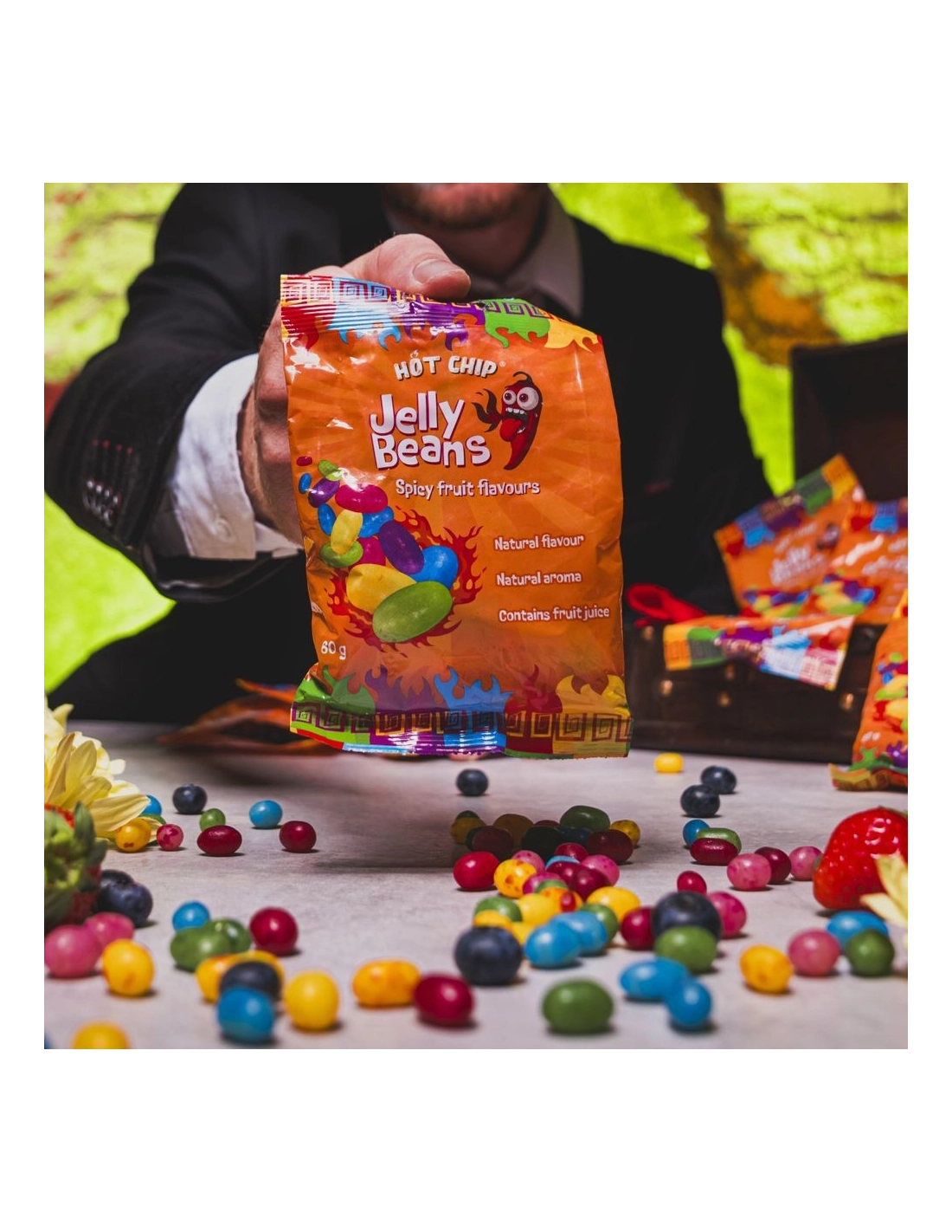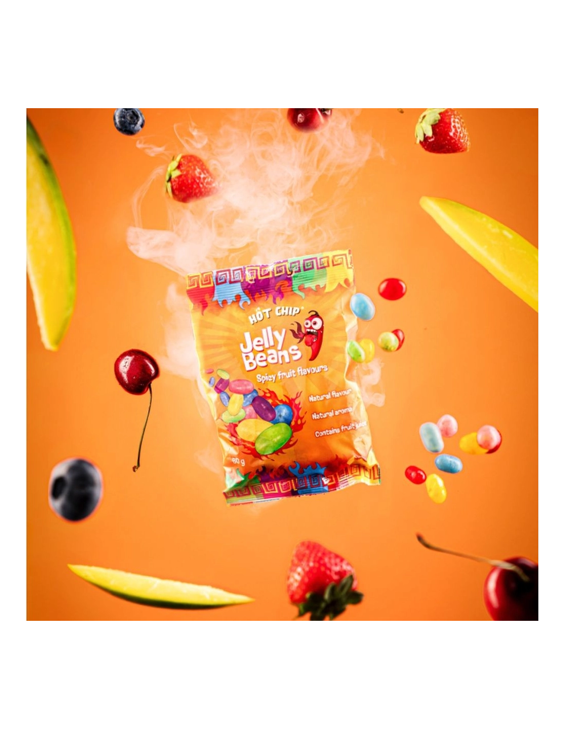 Dite addio alle caramelle noiose con Hot Chip Jelly Beans Spicy Fruits (60g) ! Lasciatevi sorprendere da questa audace creazione che unisce l'intensità di deliziosi frutti (mango, fragola, anguria, ciliegia e mirtillo) al leggero calore di un tocco di peperoncino . Un'esperienza dolce, fruttata e leggermente piccante che risveglierà le vostre papille gustative!