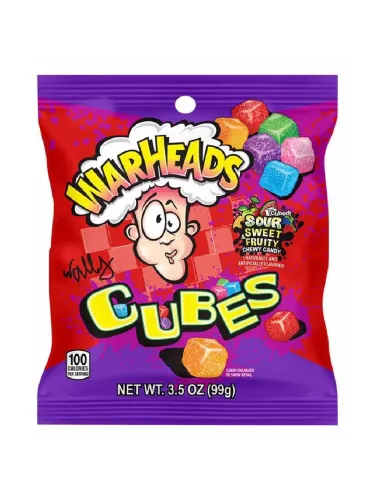 Il marchio WARHEADS CHEWY CUBES SOUR SWEET & FRUITY sono caramelle morbide da masticare in ogni momento della giornata. Deliziosamente acidi, questi sono piccoli cubetti di frutta ricoperti di zucchero che risveglieranno le vostre papille gustative. Questi dolcetti possono essere portati ovunque tu sia! Quindi, come Wally Warheads, la tua testa fumerà?