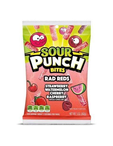 SOUR PUNCH BITES Le caramelle Rad Reds possono essere gustate in qualsiasi momento della giornata e condivise facilmente con la famiglia o gli amici. Per una pausa deliziosa e fruttata, scopri queste piccole caramelle gommose e piccanti!