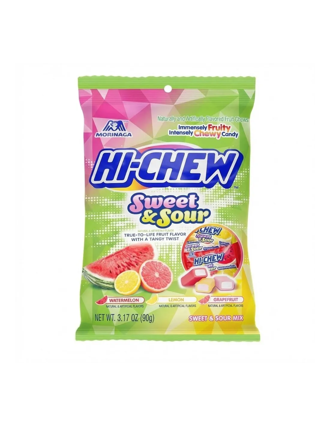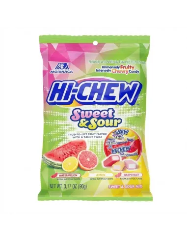 Il duello di sapori definitivo con Hi-Chew Sweet & Sour ! Questa confezione gioca sui contrasti mescolando sapori agrodolci con quelli aciduli e piccanti (spesso pompelmo, limone, anguria). Un'esperienza divertente che risveglia le papille gustative, disponibile nella nostra sezione di caramelle giapponesi .