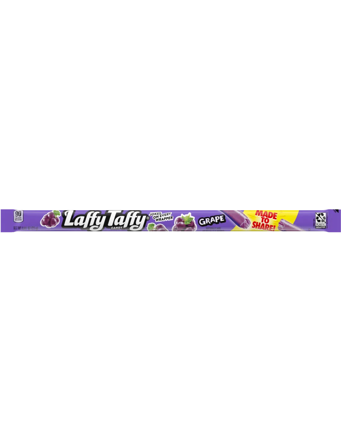Se c'è un sapore che definisce le caramelle americane, è l'uva. Laffy Taffy Grape in barretta cattura quell'aroma fruttato e intenso che è di gran moda oltreoceano. La sua consistenza flessibile ti permette di giocare con le tue caramelle: attorcigliale, allungale e assaporale in ogni momento. Il marchio Laffy Taffy è ora leader indiscusso per questa delizia gommosa che non perde mai la sua flessibilità.