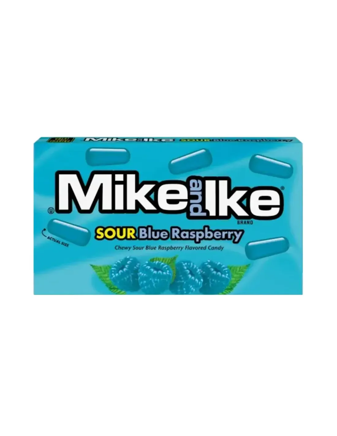 La scatola di caramelle Mike and Ike Sour Blue Raspberry è al gusto di lampone blu aspro. Ogni scatola è da 120 g.