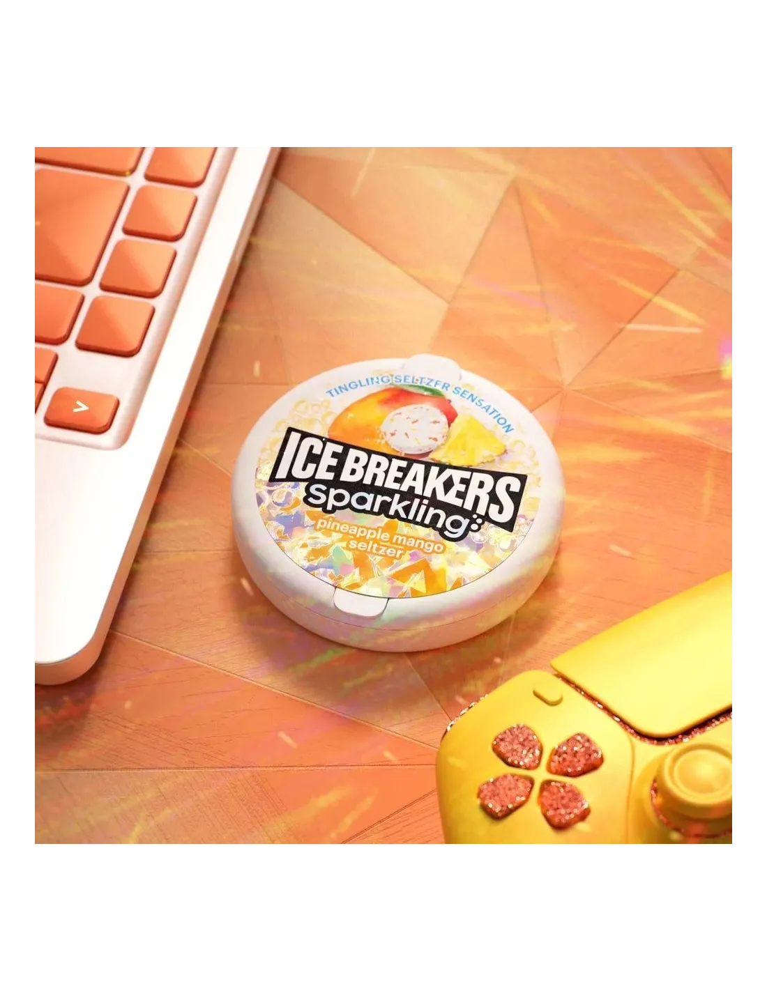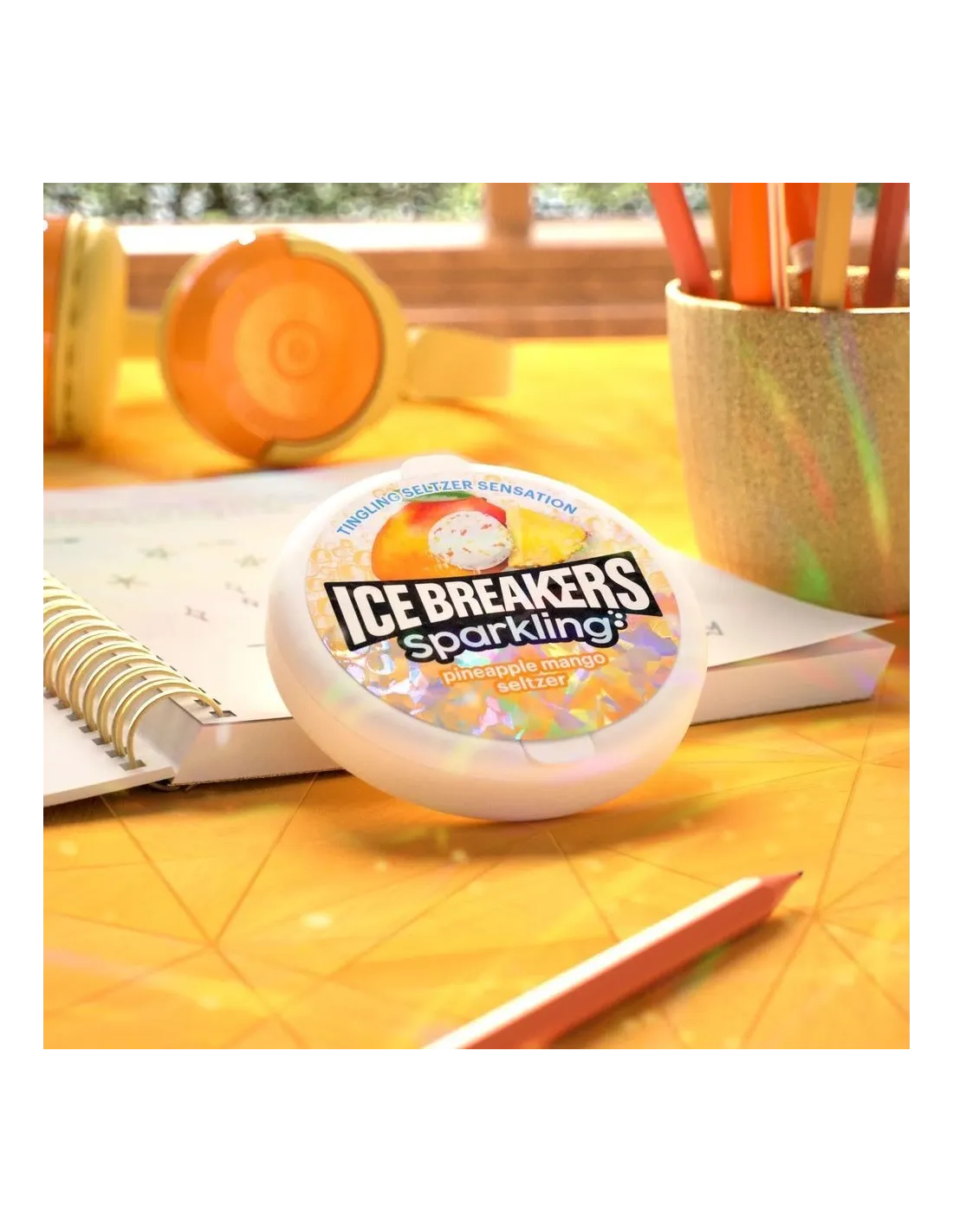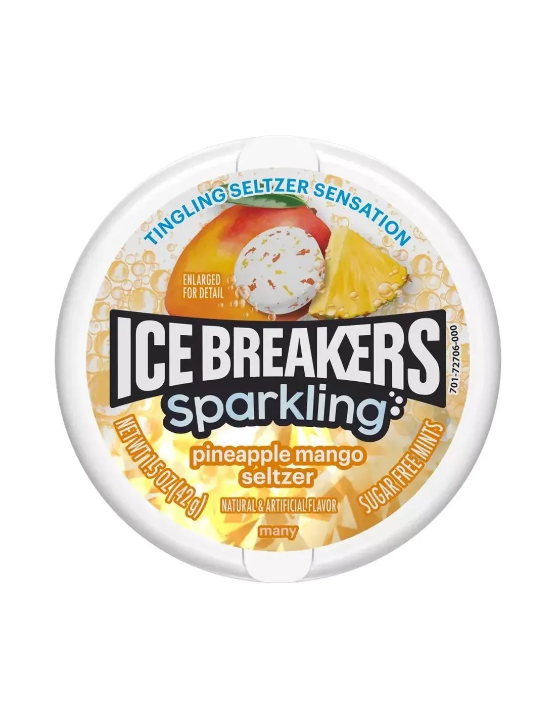 Scopri Ice Breakers Sparkling Pineapple Mango Seltzer . Pastiglie Ice Breakers senza zucchero con un gusto tropicale di ananas e mango e una sensazione frizzante (di seltz), perfette per rinfrescare l'alito ovunque.