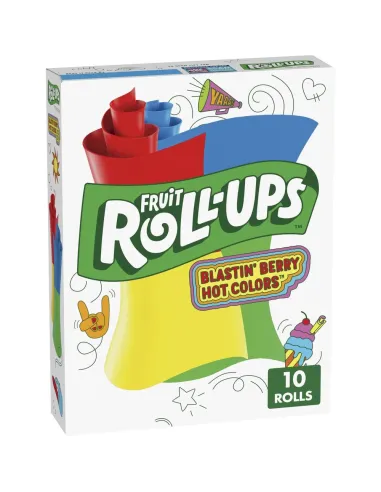I Blastin' Berry Hot Colors Fruit Roll-Ups sono dei deliziosi e colorati roll-up alla frutta. Il loro sapore esplosivo di frutti di bosco e la consistenza che si scioglie in bocca li rendono uno snack dolce tipicamente americano, amato sia dai bambini che dagli adulti nostalgici.