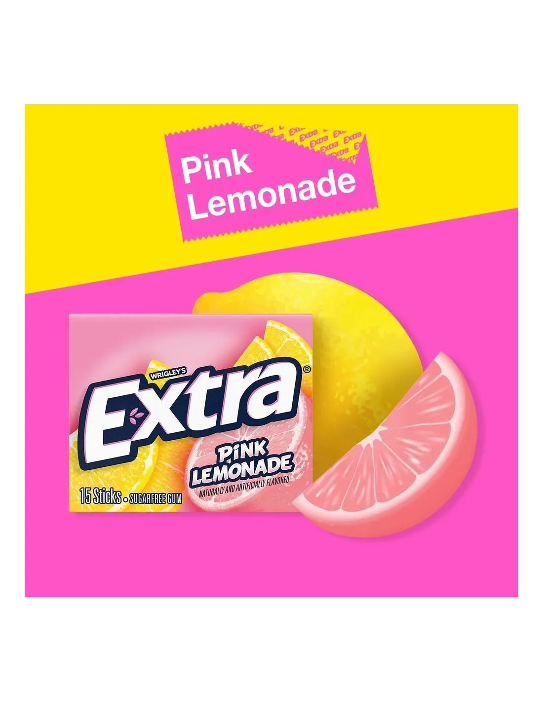 Extra Gum Pink Lemonade è la freschezza divertente e fruttata del limone rosa! Un gusto vivace, aspro e dolce, con una masticazione persistente tipica di Extra.