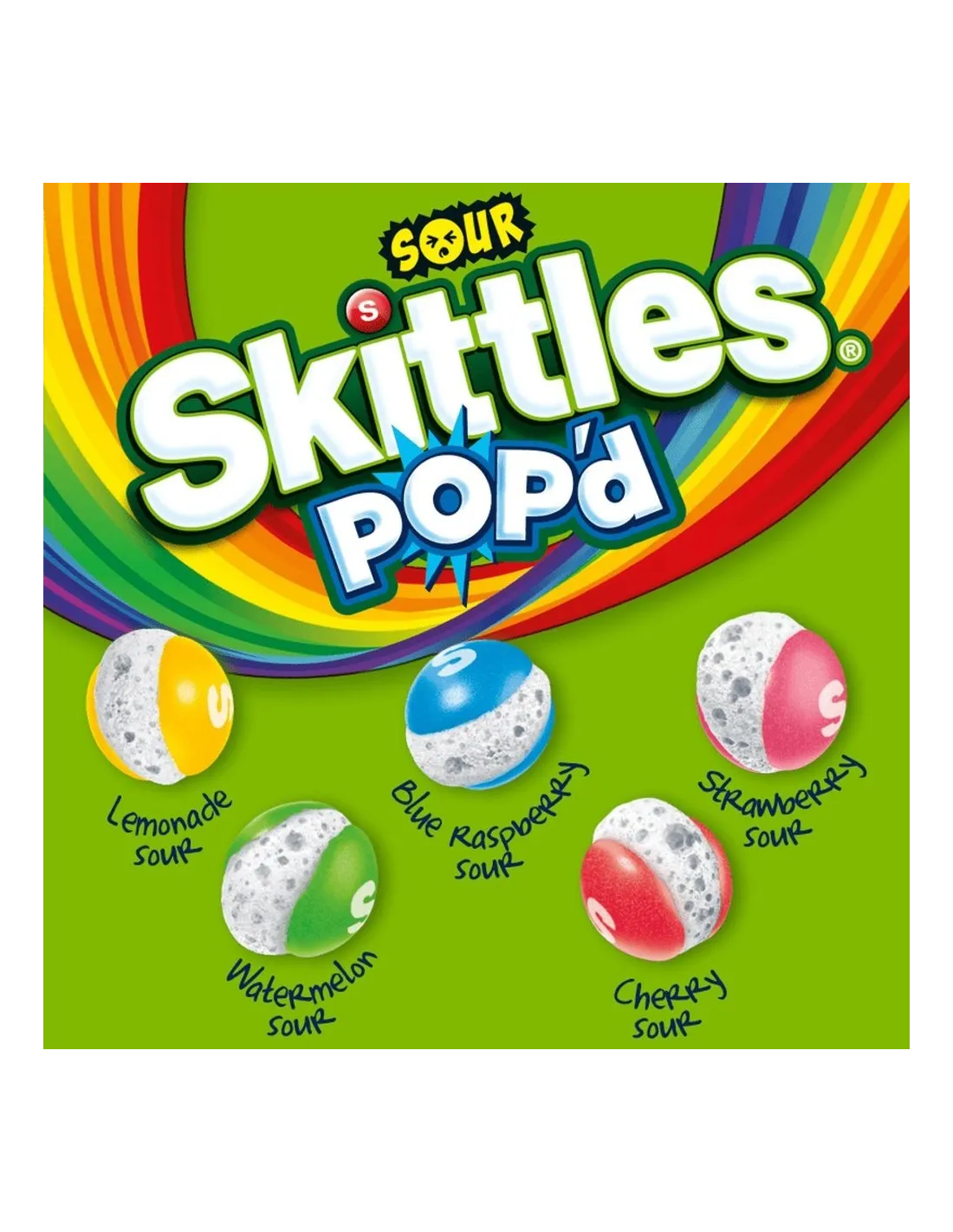 Noi di Pop's America adoriamo le Skittles POP'd Sour per il loro colore vivace, la croccantezza incredibile e l'acidità accentuata.