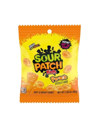 Voglia di una dolce e golosa sorpresa? Lasciatevi tentare dalle caramelle SOUR PATCH KIDS PEACH . Deliziosamente aspre, queste piccole caramelle risveglieranno le vostre papille gustative con il loro sapore di pesca. Gustate queste caramelle morbide e aspre e rivivete la vostra infanzia con la loro forma unica. Scoprite sorprendenti dolcezze che uniscono acidità e dolcezza.