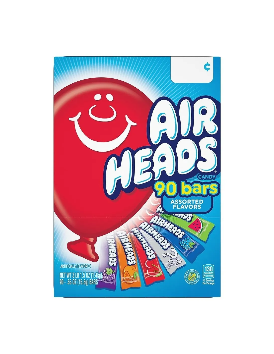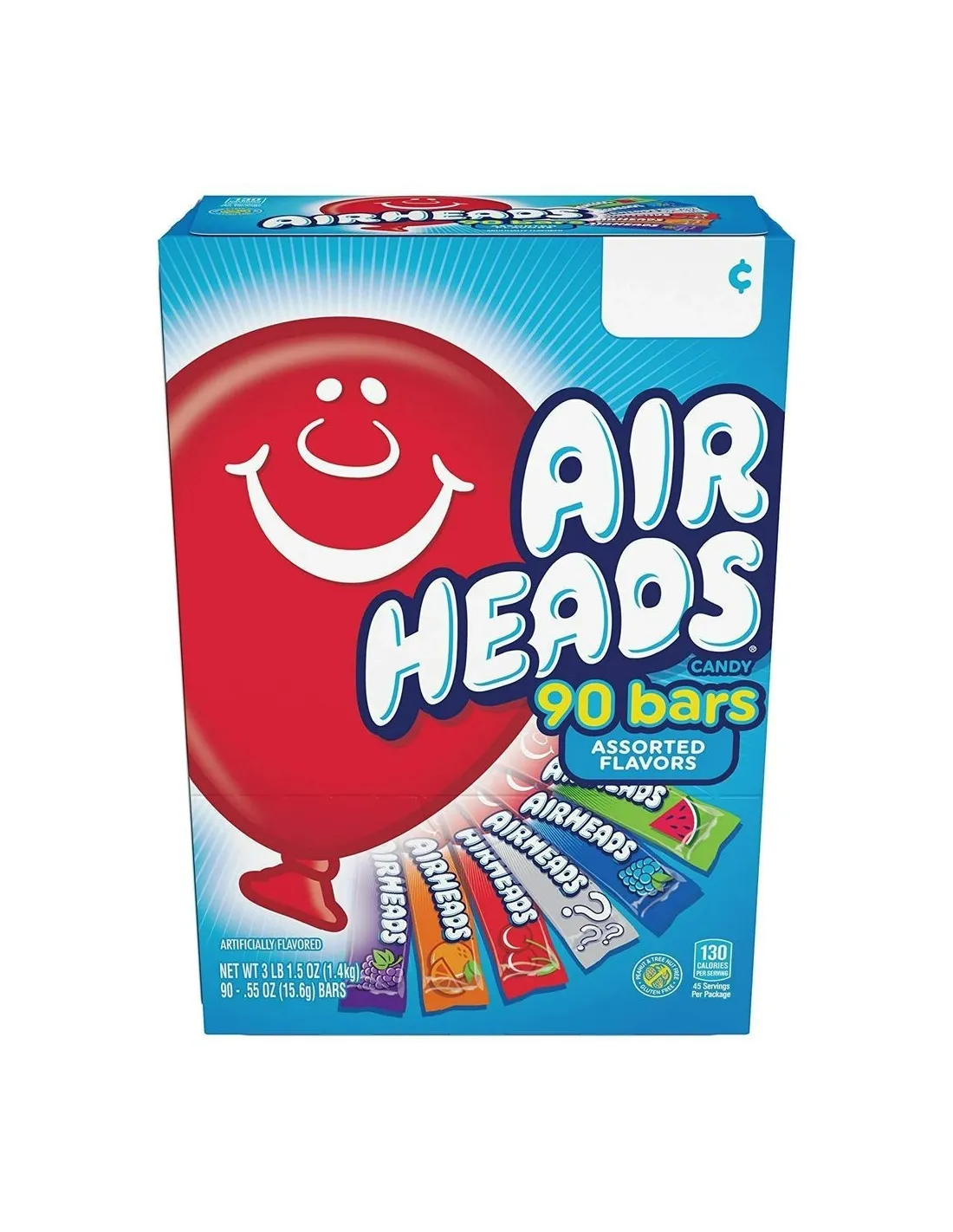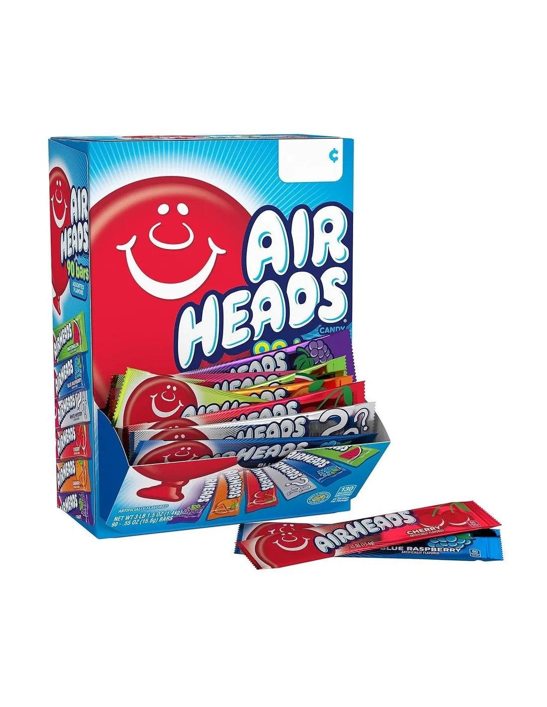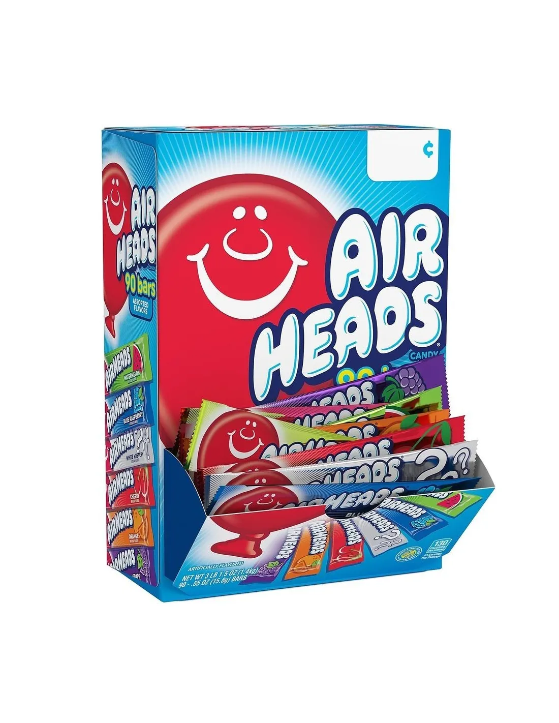 Scopri questo mega pack delle famose barrette Airheads in versione da 90 barrette. Ogni confezione assortita Airheads da 60 barrette contiene 15 barrette in 6 gusti diversi. Consistenza morbida, sapore fruttato e la dimensione perfetta da condividere con gli amici!